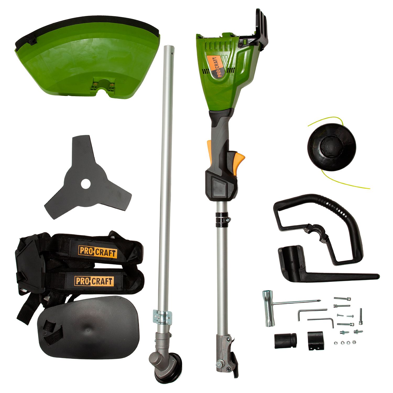 Основними перевагами акумуляторної коси Procraft PTA20/2 є розбірна конструкція штанги для зручного зберігання, надійний ремінь для комфортної роботи, наявність захисного кожуху для безпеки оператора, а також широкий діапазон регулювання частоти холостого ходу, що дозволяє пристосувати косу до різних завдань.