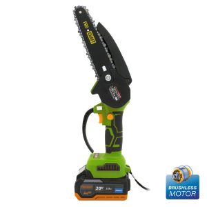 Компактна акумуляторна міні-пила для обрізання гілок, швидкого розкрою деревини та робіт у важкодоступних місцях.