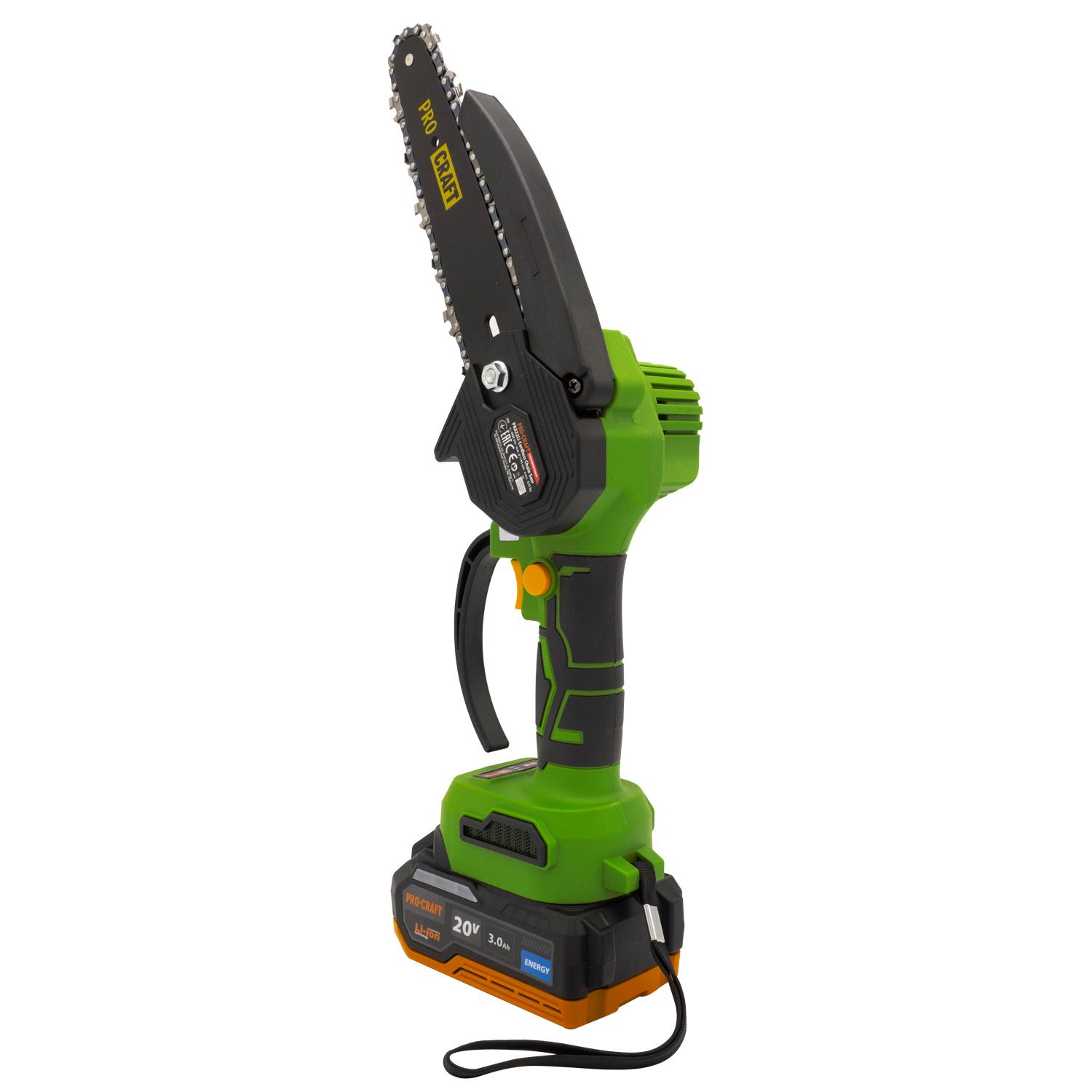 Характеристики: число обертів холостого ходу: 4600 об/хв; напруга: 20 В; довжина шини: 6; крок ланцюга: 1/4; клас захисту: IPX0; рівень звукового тиску: 87 дБ(А) (±3 дБ); рівень звукової потужності: 95 дБ(А) (±3 дБ); рівень вібрації: 5,26 м/с (±1,5 м/с); автоматичне змащення ланцюга: відсутнє; двигун: безщітковий.