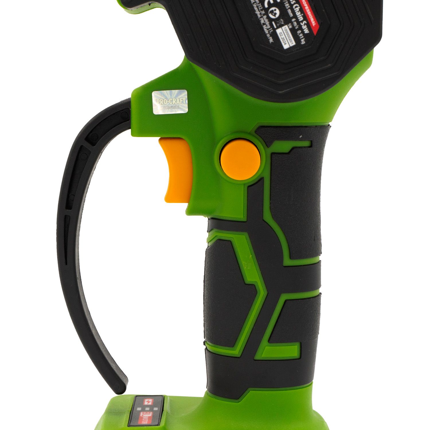 Конструктивні Особливості: безщітковий мотор із великим ресурсом; крок ланцюга 1/4" для точного різу; захисні кожухи та продумана рукоятка; змазування ланцюга виконується вручну (автоматичного немає); клас захисту IPX0.