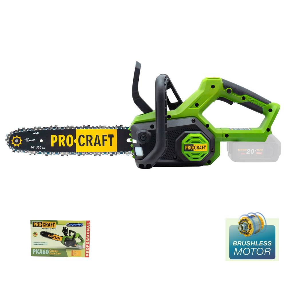 Procraft PKA60 – це ідеальний вибір для тих, хто шукає потужну, надійну та зручну акумуляторну ланцюгову пилу для різноманітних завдань.