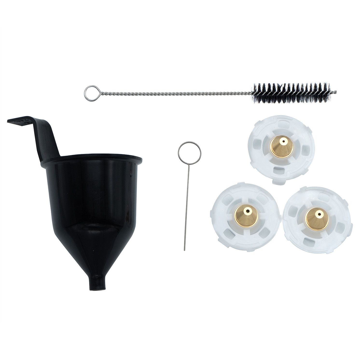 6 мм Витрата фарби: до 750 мл/хв В’язкість фарби: до 100 DIN Відстань розпилення: 5–30 см Повітряний потік: 1100 л/хв Рівень шуму: звуковий тиск LpA = 81 дБ (А), звукова потужність LwA = 92 дБ (А) Рівень вібрації: 0,609 м/с Ступінь захисту: IPX0 Вага (повна комплектація): 1,6 кг Особливості: Можливість роботи без кабелю завдяки акумуляторному живленню В комплекті кілька змінних сопел для різних типів фарбування Плавне регулювання ширини факела Безщітковий двигун забезпечує довготривалу роботу без обслуговування Переваги: Висока мобільність — ідеально підходить для роботи на об’єктах без доступу до електромережі Якісне нанесення фарби з мінімальними втратами матеріалу Зниження втоми оператора завдяки легкій вазі Простота у використанні й обслуговуванні