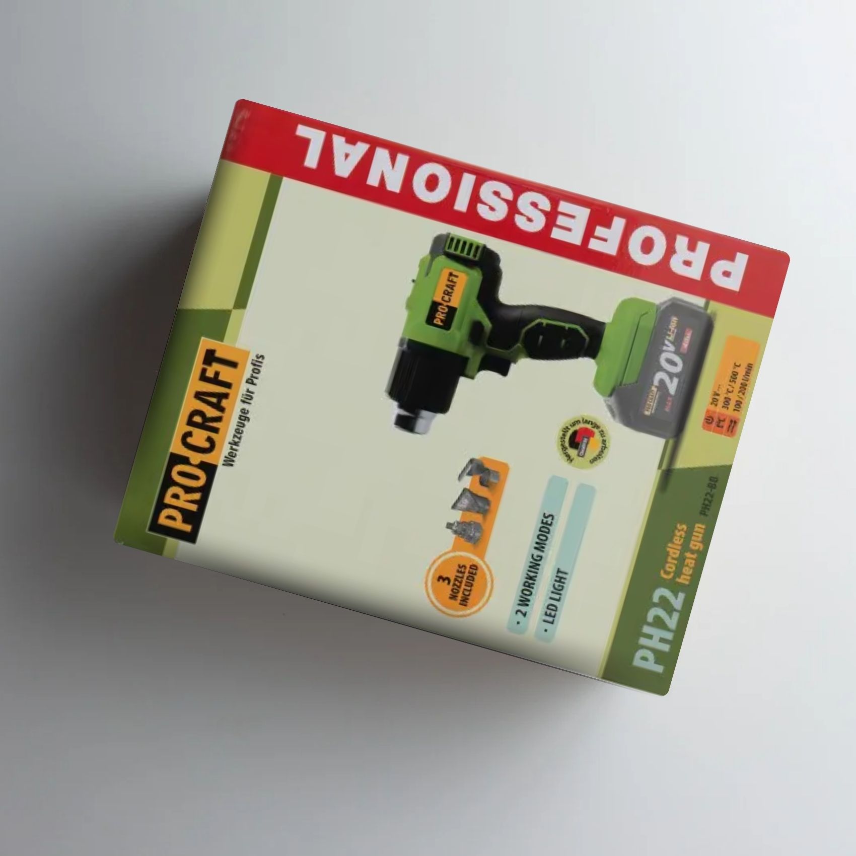 Procraft PH22 – це сучасний акумуляторний фен, який поєднує мобільність, потужність і надійність, ідеально підходить для професійного та домашнього використання. Завдяки автономності бездротової роботи, швидкому нагріву та високій температурі, він чудово справляється із завданнями, такими як термоусадка, видалення фарби чи ремонт. Ергономічний дизайн забезпечує комфортну експлуатацію навіть при тривалому використанні, а міцна конструкція гарантує довговічність.