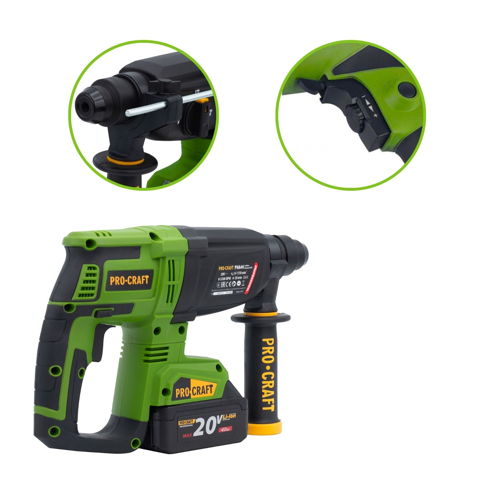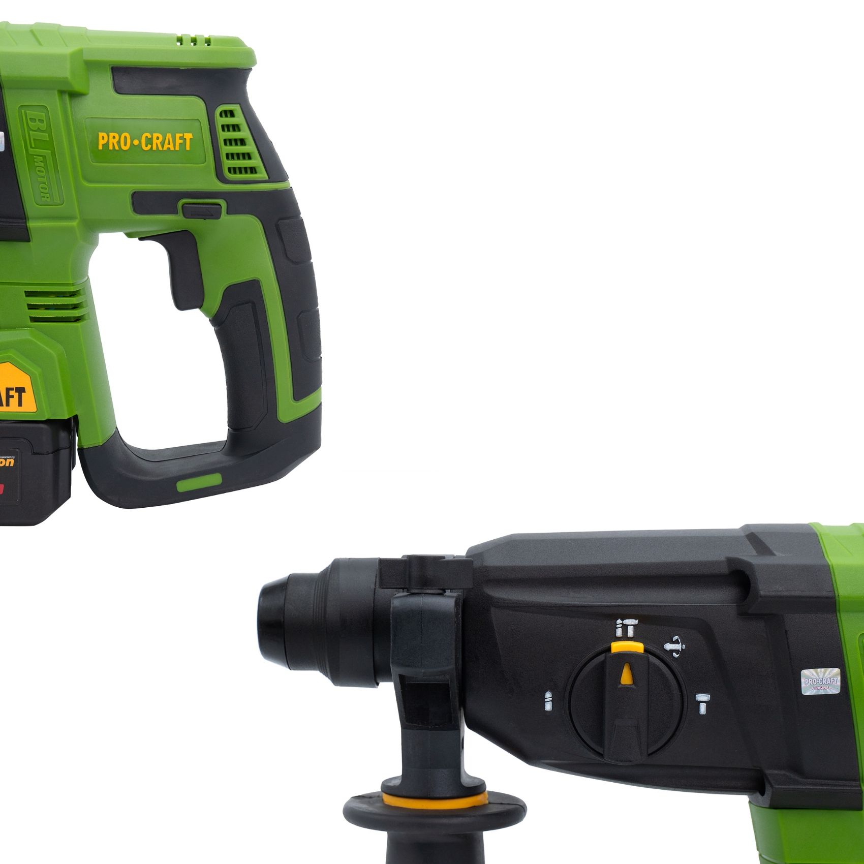 Акумуляторний перфоратор Procraft PHA40 Кейс (з 2 АКБ і ЗП) це відмінний пристрій, який поєднує передові технології, потужний безщітковий двигун і зручність використання без прив'язки до електромережі.