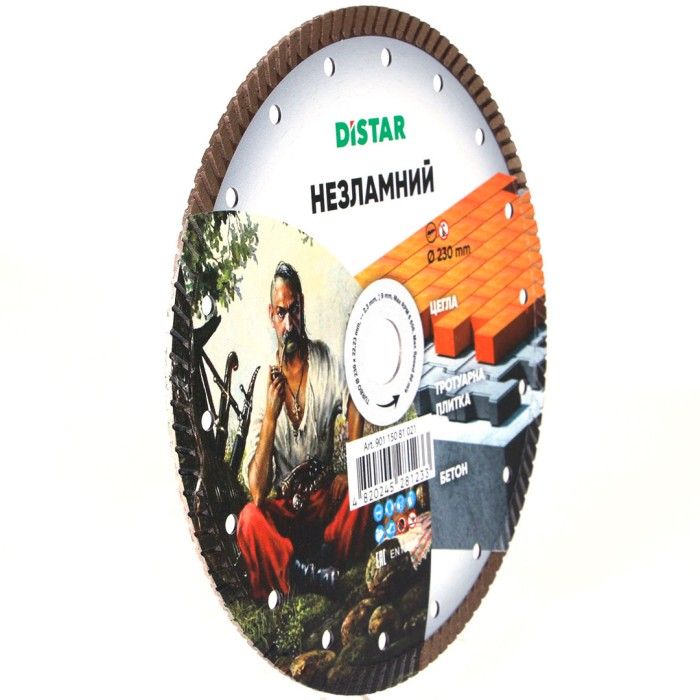 Алмазний відрізний диск Distar Turbo - це інструмент високої якості для швидкого та точного різання каменю, бетону, цегли, кераміки та інших будівельних матеріалів. Даний диск має діаметр 230 мм, товщину 2,3 мм та посадковий отвір 22,23 мм. Виготовлений зі спеціального абразивного матеріалу, що забезпечує тривалий термін служби та високу продуктивність. Ідеально підходить для професійного використання в будівельній сфері.