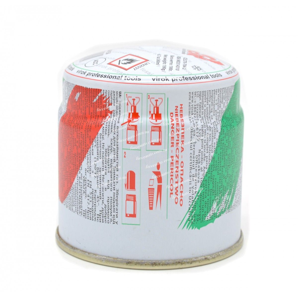 Газовий катридж ТІЛЬКИ Ф2 Балон газовий 1-разовий 'VIROK', BUTAN ,тип 200, 190 г , 360 мл (Італія) - це високоякісний газовий катридж, який ідеально підходить для використання в різних областях життя. Він оснащений з'єднанням пробивного типу, що забезпечує зручність у використанні. Балон має об'єм 360 мл і вміщує в себе 190 г газу BUTAN. Цей катридж вироблений в Італії і відрізняється високою якістю і надійністю.