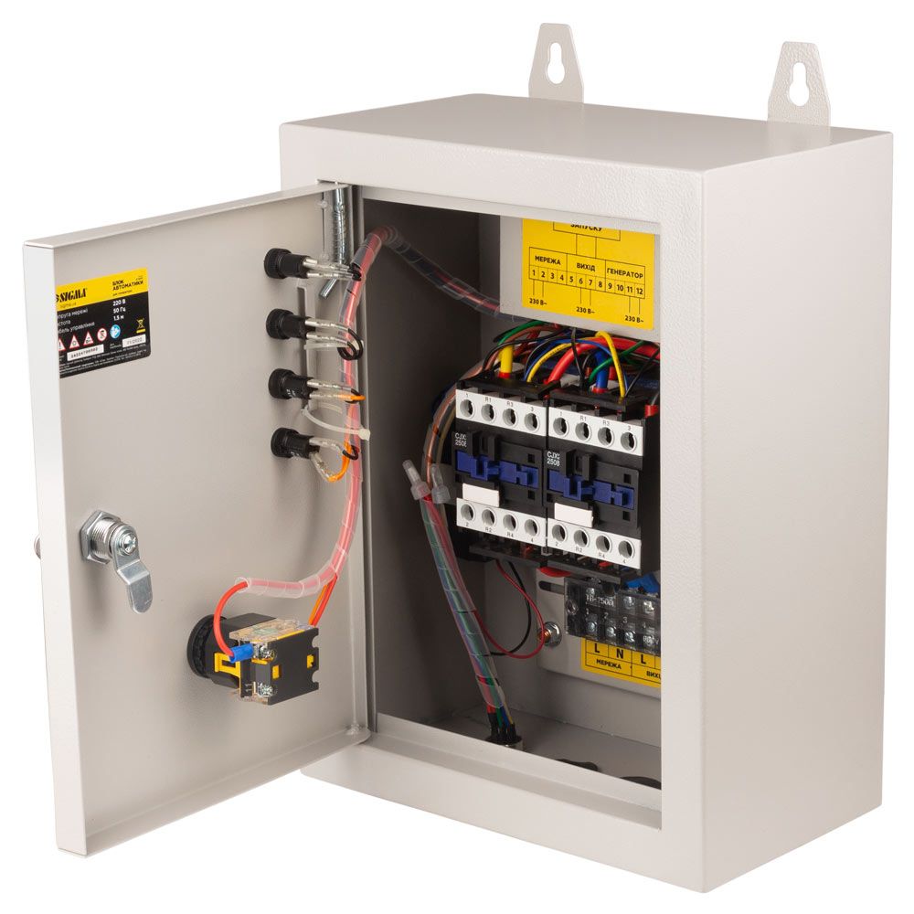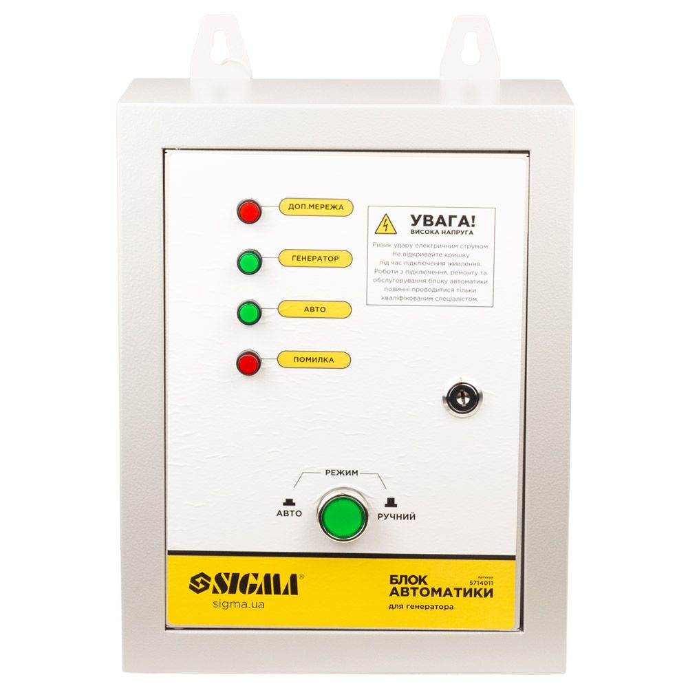 Блок автоматики для генераторів 220В SIGMA (5714011) застосовується для спільної роботи з генераторами, які мають опцію автоматичної роботи і винесений на передню панель роз’єм для підключення блоку автоматики.
