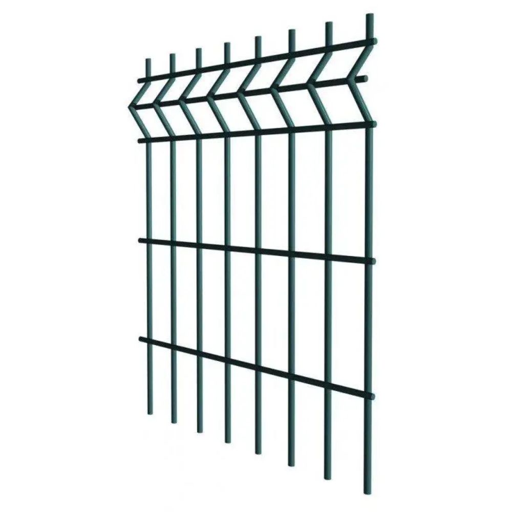 Сітка секційна 3D 1500×2500 мм — це готова панель для облаштування огорож приватних територій, промислових об’єктів та громадських зон. Конструкція з V-подібними вигинами забезпечує підвищену жорсткість і стійкість до навантажень. Оцинковане покриття з полімерним фарбуванням RAL 7016 гарантує довговічність та захист від корозії.