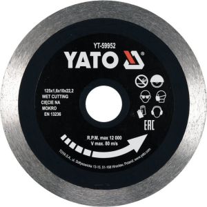Диск відрізний алмазний по гресу, склу, кераміці YATO =125x1.6x10x22.2 мм, в мокрому режимі. Цей диск призначений для різання скла, кераміки та інших матеріалів. Він має посадковий діаметр 22.2 мм і є суцільним типом. Завдяки своїм особливостям, таким як корозійні властивості, міцність та швидкість різання, цей диск є незамінним інструментом у будівельній сфері, ремонті та різних побутових роботах. Використовується в мокрому режимі, що забезпечує більш комфортну роботу і довговічність диску. Купуючи цей диск, ви отримуєте надійний і високоякісний інструмент, який легко впорається з різанням скла, кераміки та інших матеріалів.