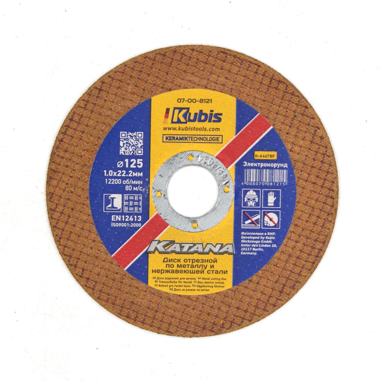 Диск відрізний KATANA по металу і нержав/сталь 125*1.0*22 мм, Ceramic 10x має також інші унікальні властивості та переваги. Його робочий матеріал - метал, що забезпечує високу міцність і довговічність. Цей диск відрізняється високою якістю і надійністю, що дозволяє виконувати різання металу з точністю і чистотою. Він також має суцільний тип і сегментну ріжучу кромку, що додає ефективності його роботі. Цей диск є незамінним інструментом у будівництві, ремонтних роботах та виробництві металевих виробів.