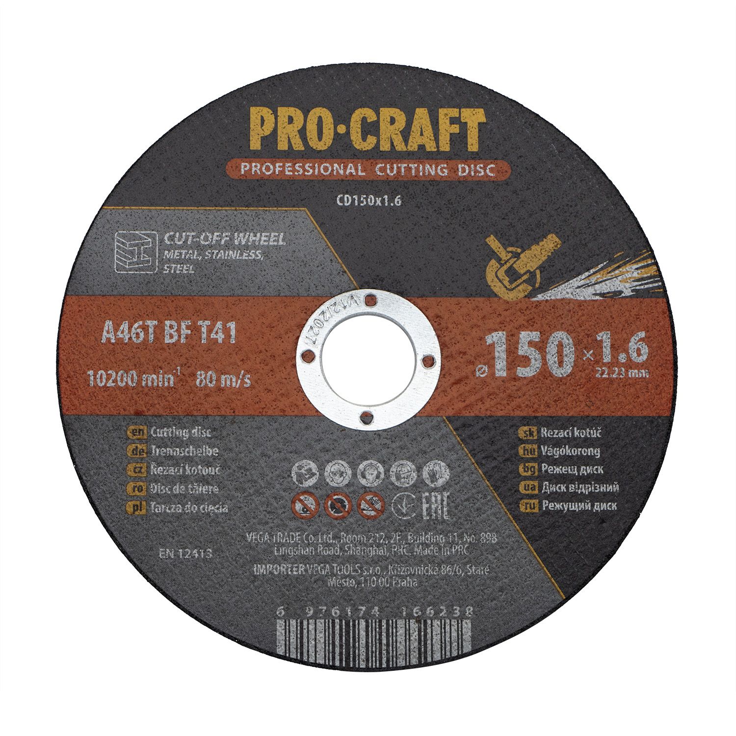 Характеристики Тип: відрізний диск по металу Зовнішній діаметр: 150 мм Товщина: 1,6 мм Посадковий діаметр: 22,2 мм матеріал: абразив Комплектація Відрізний диск — 1 шт.