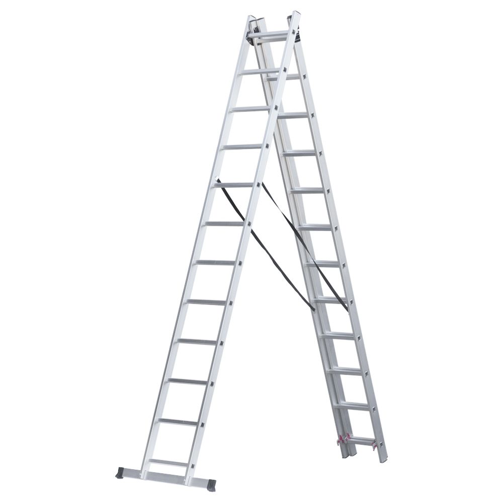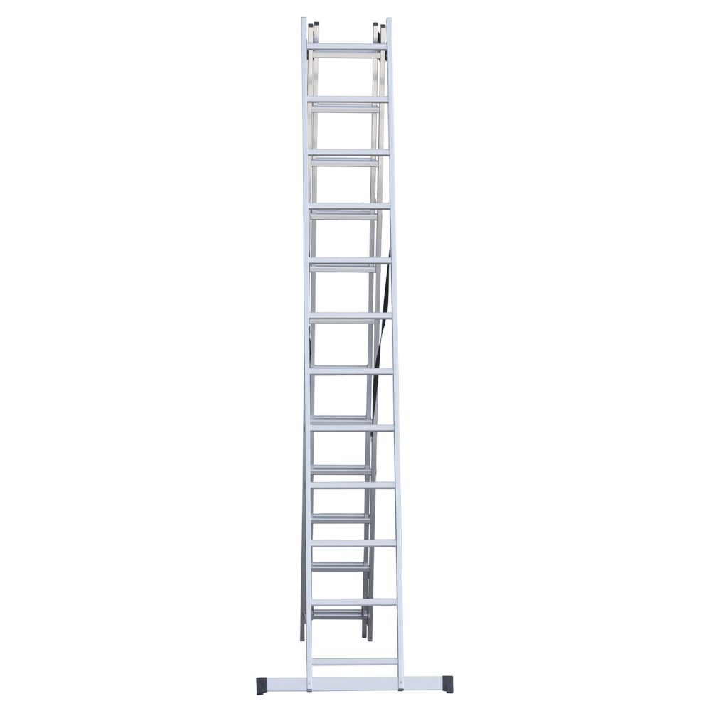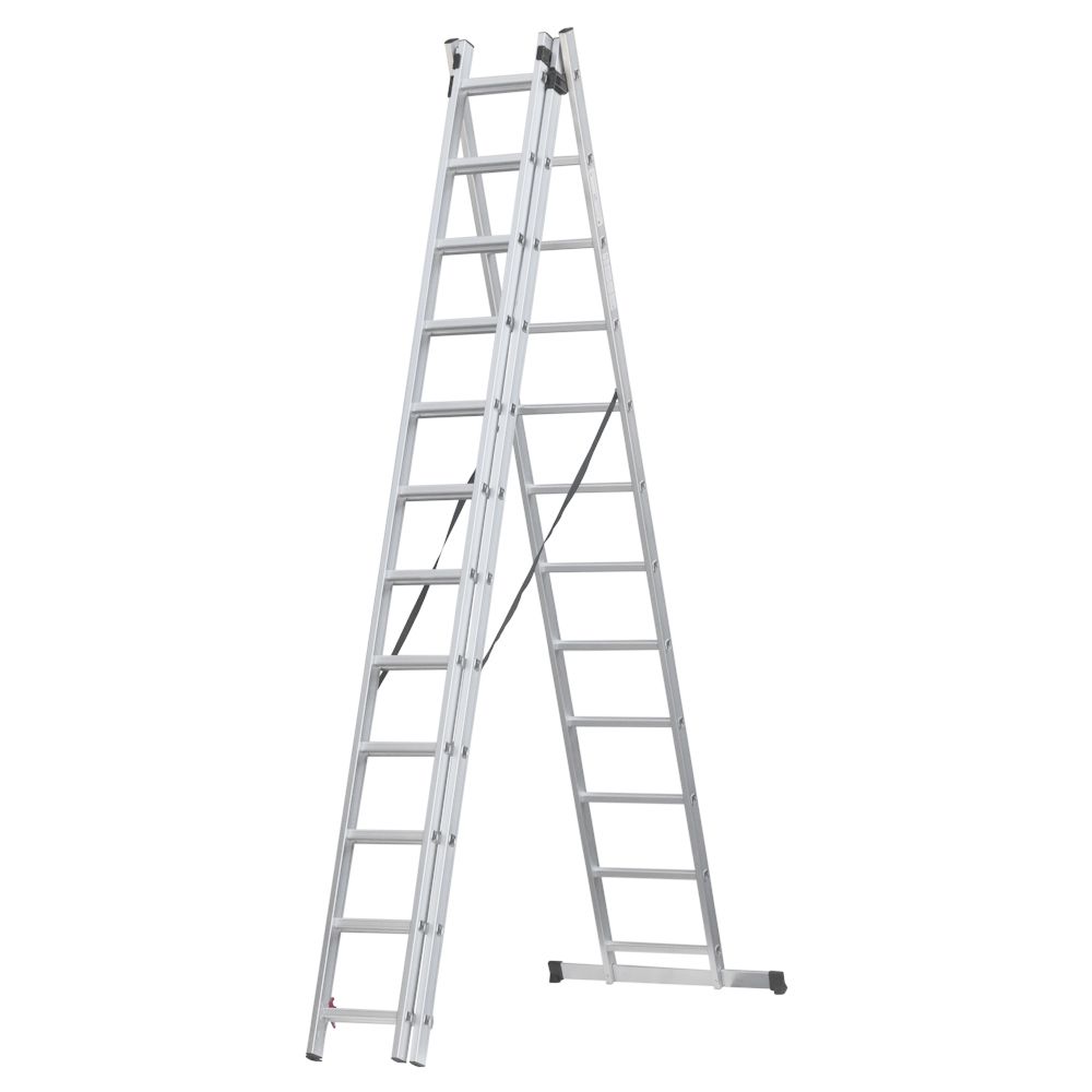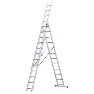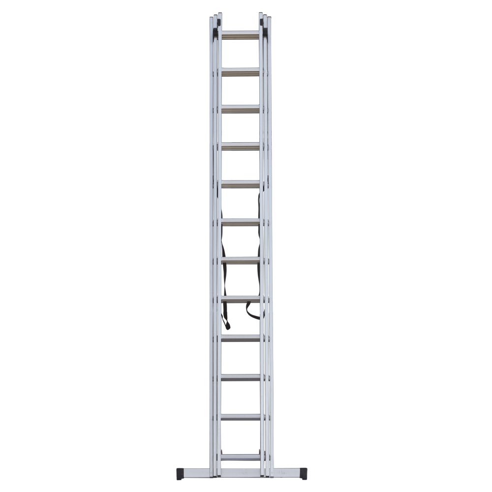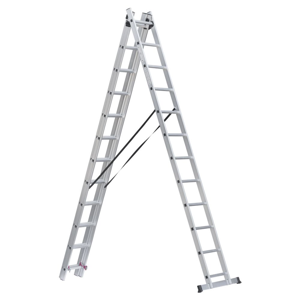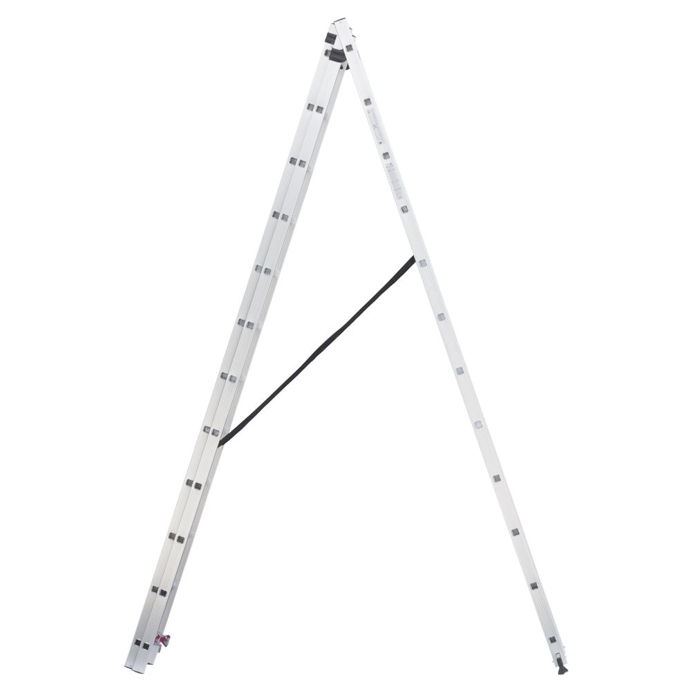 Драбина розкладна універсальна SIGMA з 12 сходинками і максимальною висотою 7,89 м стане надійним помічником як у будівельних чи ремонтних роботах, так і в садівництві. Конструкція дозволяє використовувати її як приставну, висувну або класичну стрем’янку, забезпечуючи комфорт та безпеку під час будь-яких завдань. Виготовлена з міцного алюмінію, вона витримує навантаження до 150 кг, має широкий упор для стійкості, рифлені нековзні сходинки та захисні ніжки. Система самофіксуючих гачків та міцні ремені запобігають довільному розсуванню секцій, а продумана конструкція забезпечує зручне складання й транспортування. У складеному вигляді висота становить 3,3 м, у вигляді стрем’янки – 3,2 м, а у формі «А» – 5,35 м, що робить її універсальним рішенням для роботи на різних висотах.