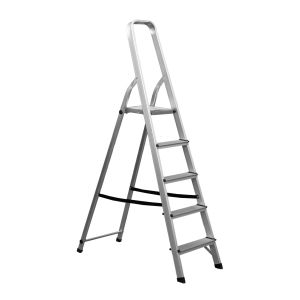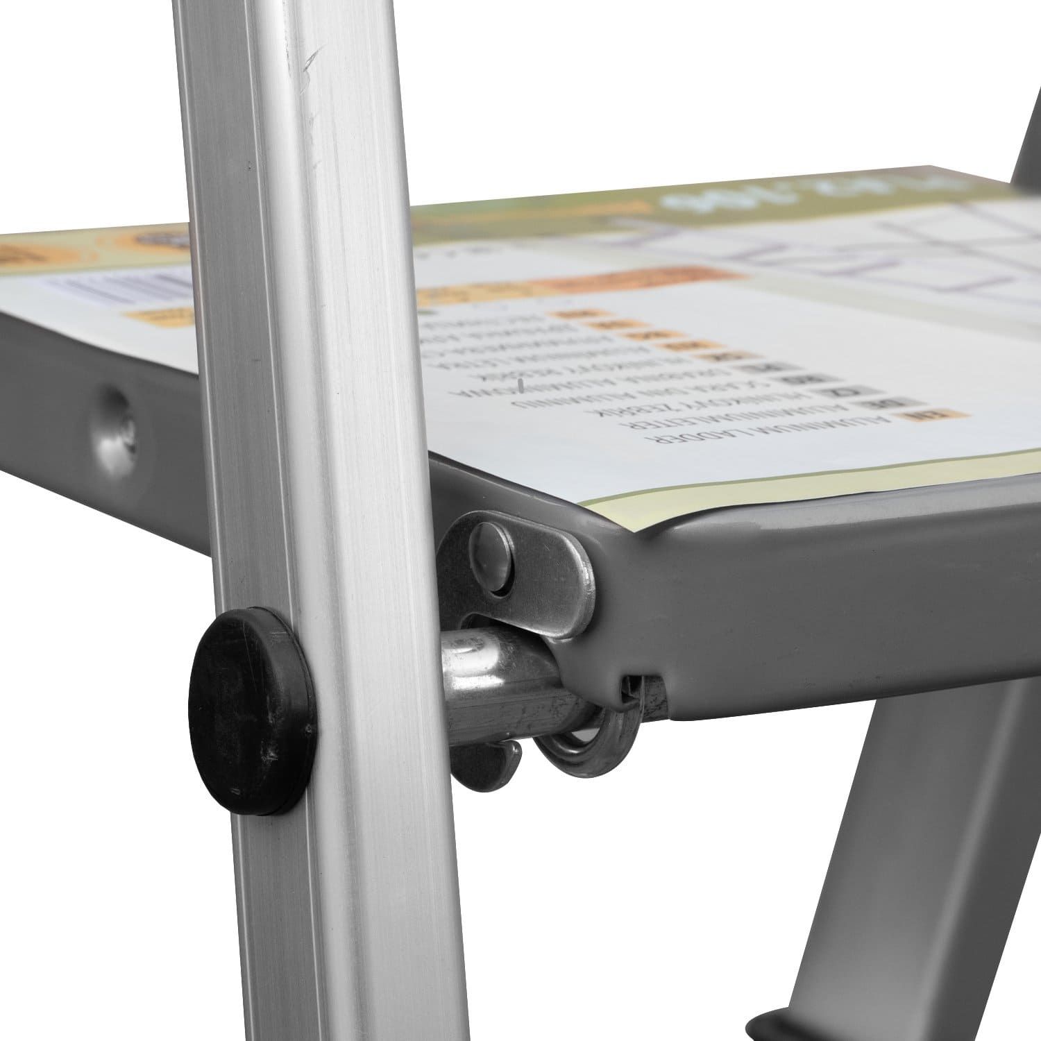 Багатофункціональність: Ця алюмінієва драбина має 5 ступенів і досягає максимальної робочої висоти 106 см, що робить її універсальним інструментом для різних завдань.