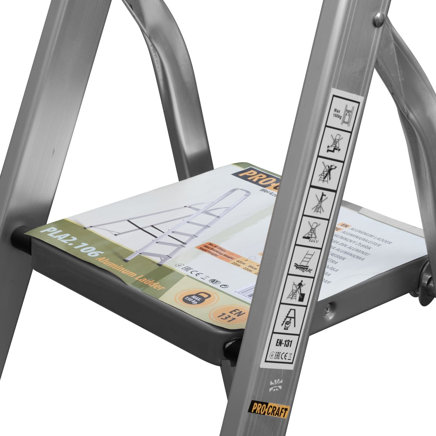 106: переваги Висока якість матеріалу: Вироблена з алюмінію, драбина-стремянка алюмінієва Procraft PLA2.