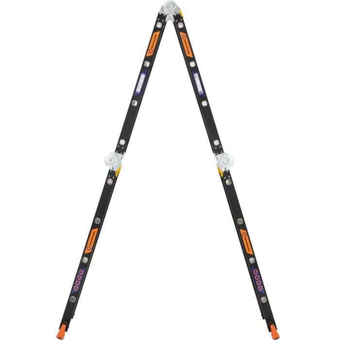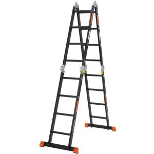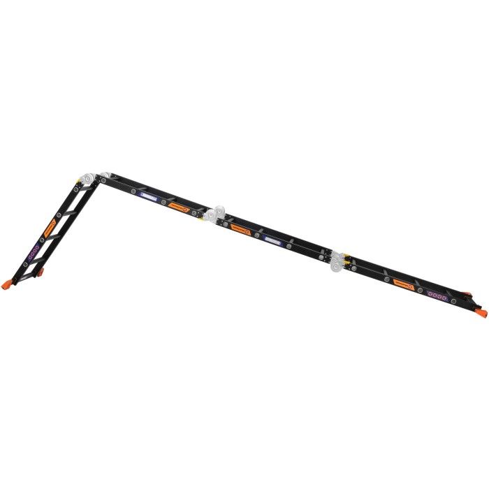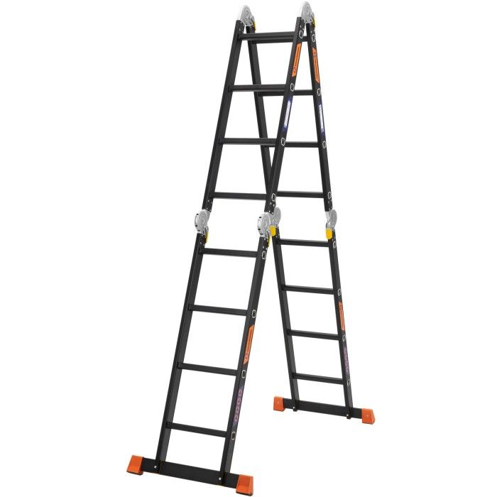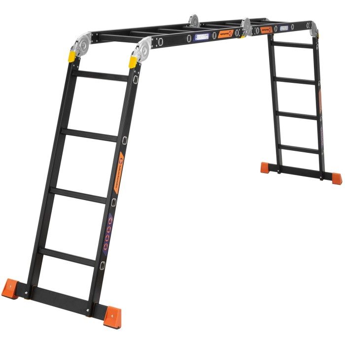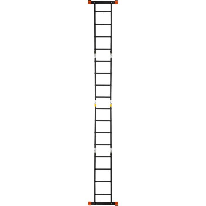 Багатофункціональна алюмінієва драбина-трансформер на 4 секції (16 сходинок), яку можна організувати як стрем’янку, приставну драбину або робочий поміст.