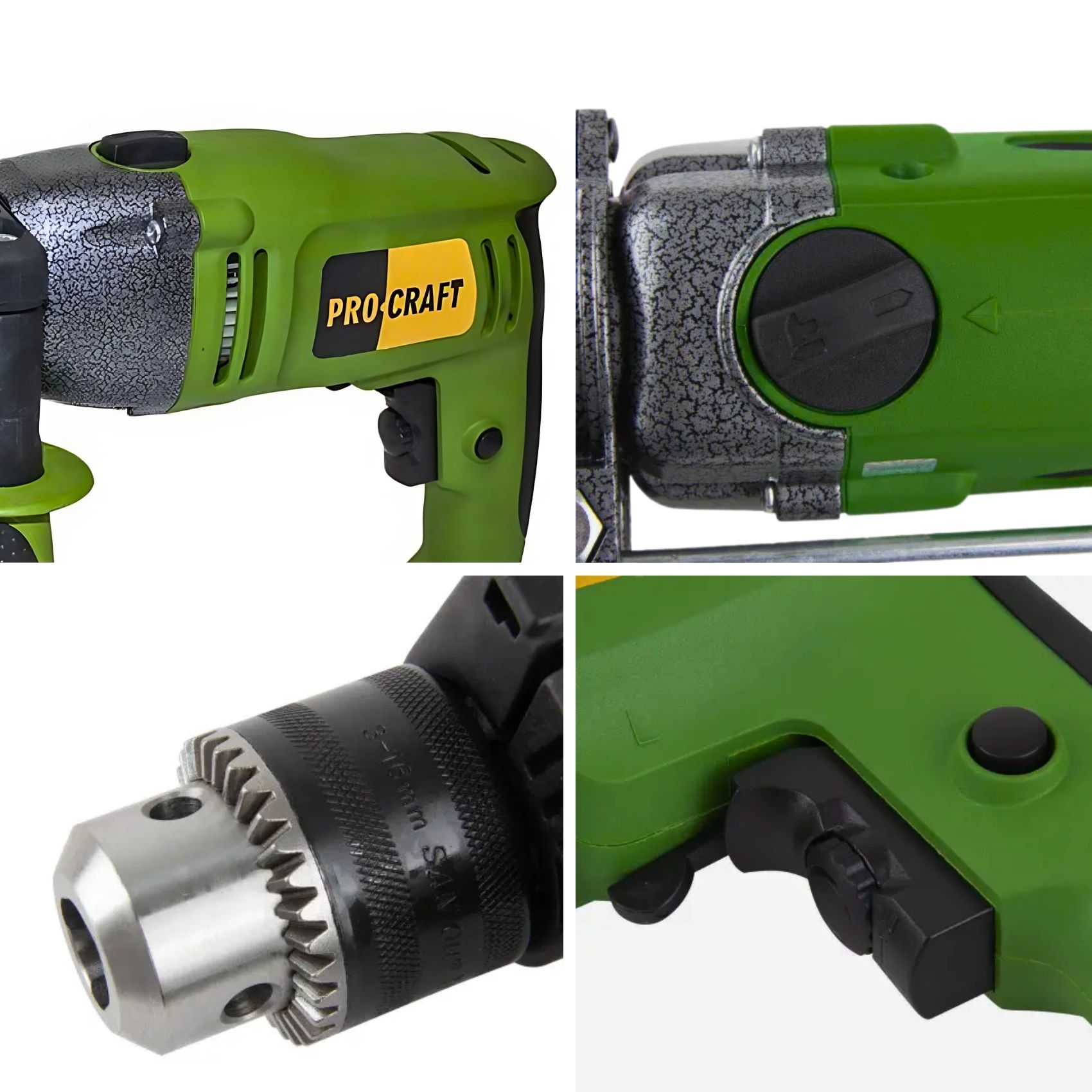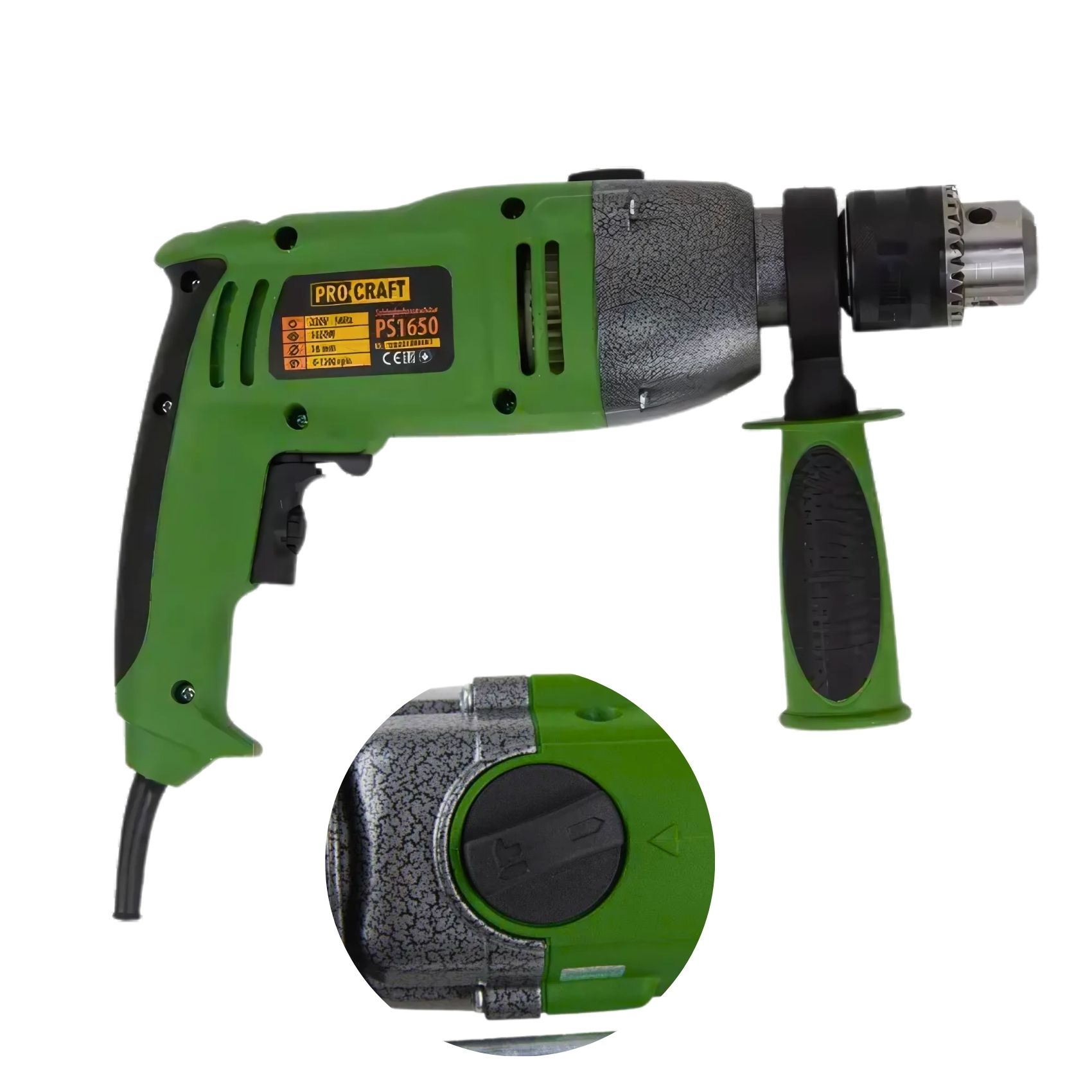 Дриль Procraft PS1650 має швидкозаточний патрон, що дозволяє швидко і зручно заміняти свердла. Вона має високу потужність і частоту ударів, що дозволяє легко пробивати отвори у різних матеріалах. Крім того, вона має низьку вагу, що дозволяє зручно і комфортно працювати з нею протягом тривалого часу.