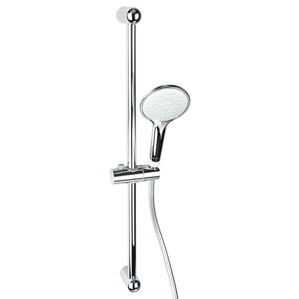 Душова стійка з душовим комплектом - це комплект, що складається з ручної лійки зі шлангом, тримача для неї та штанги-труби (також залежно від моделі може бути верхній душ). Штанга встановлюється паралельно стіні за допомогою металевих або пластикових розпорників і вже безпосередньо до цієї штанги кріпляться всі інші елементи.