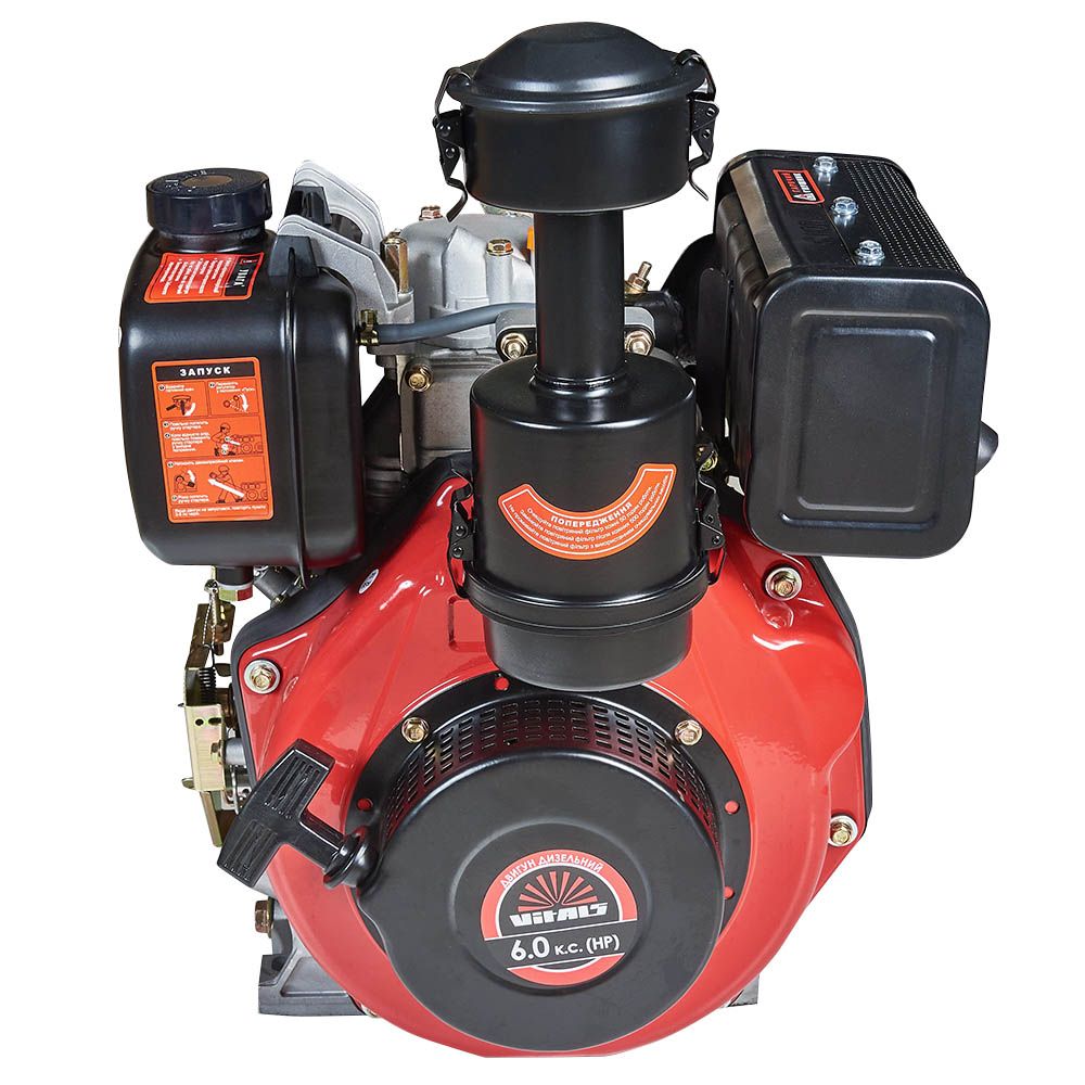 Дизельний двигун Vitals DE 6.0s - надійний та потужний двигун з високою потужністю 4410 Вт (6 к.с.). Використовується в різних галузях, зокрема в сільському господарстві, будівництві та промисловості. Має об'єм двигуна 296 куб. см і вагу 32 кг. Тип старту - ручний. Ідеально підходить для важких робіт та експлуатації в умовах з високими навантаженнями. Забезпечує ефективну та безперебійну роботу.
