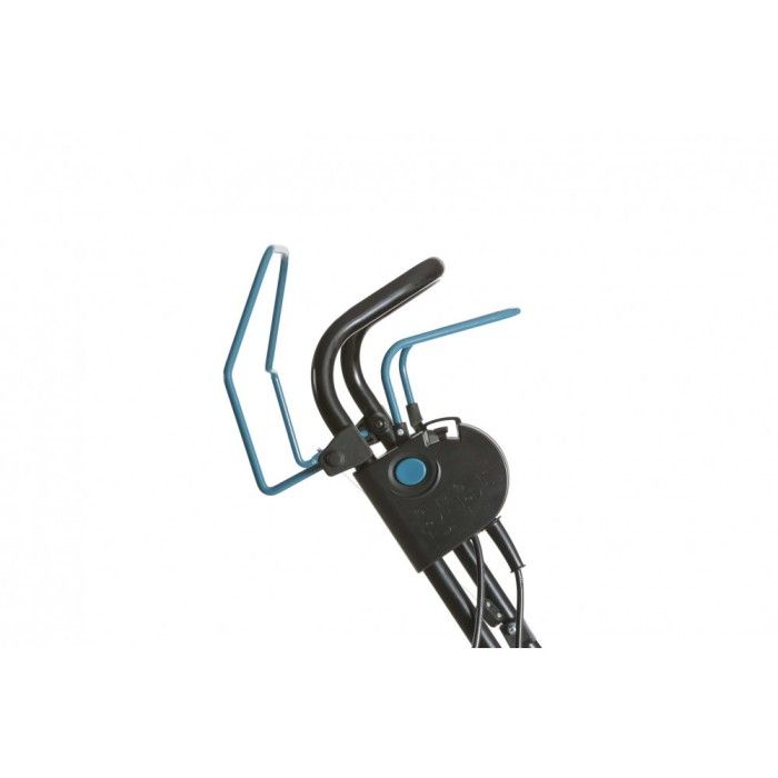 Вона оснащена тримаючим рукоятками, що забезпечує зручність та комфорт під час роботи, а також обладнана системою збору трави, що полегшує процес чистки.