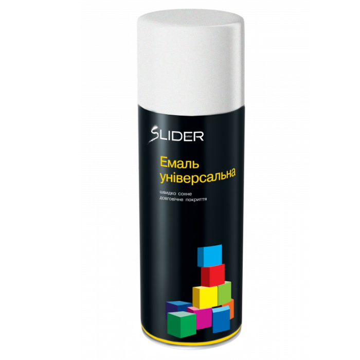 Емаль SLIDER color універсальна 9010 біла глянцева 400 мл підходить для різних сфер застосування. Вона може бути використана для фарбування металевих і дерев'яних виробів, таких як меблі, двері, перила, радіатори і багато інших.