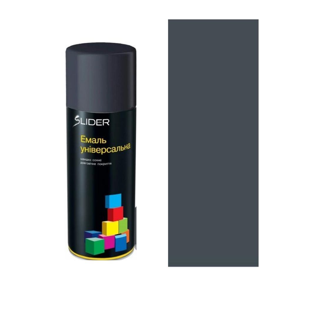 Емаль SLIDER color універсальна 7016 сірий антрацит 400мл може бути використана для фарбування металевих та дерев'яних поверхонь, таких як меблі, ворота, перила, радіатори і багато іншого. Вона ідеально підходить для зовнішнього та внутрішнього використання.