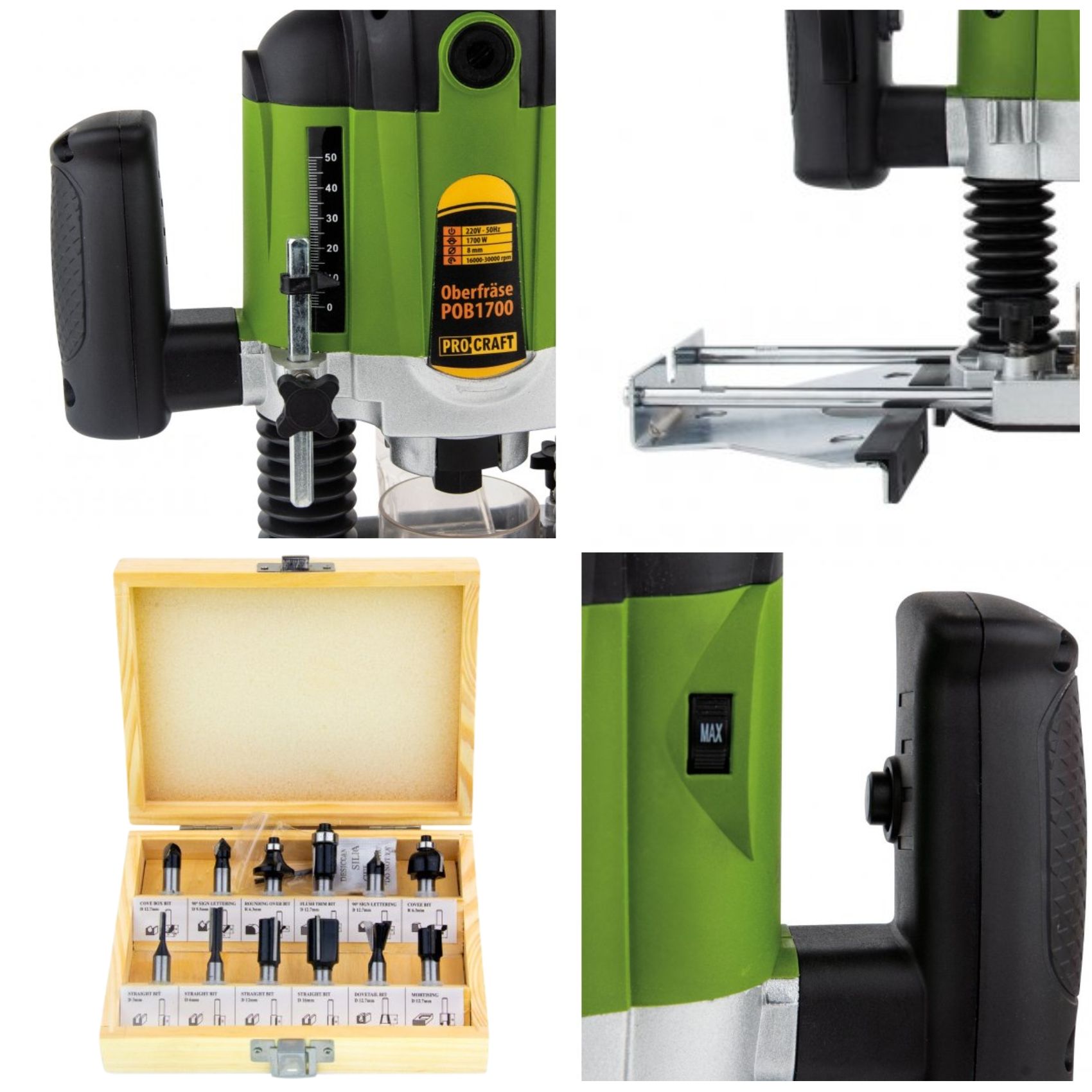 Фрезер РОВ1700 Procraft ідеально підходить для обробки деревини в майстерні або на виробництві. Він може використовуватись для фрезерування, різання канавок, обробки країв та багатьох інших завдань.