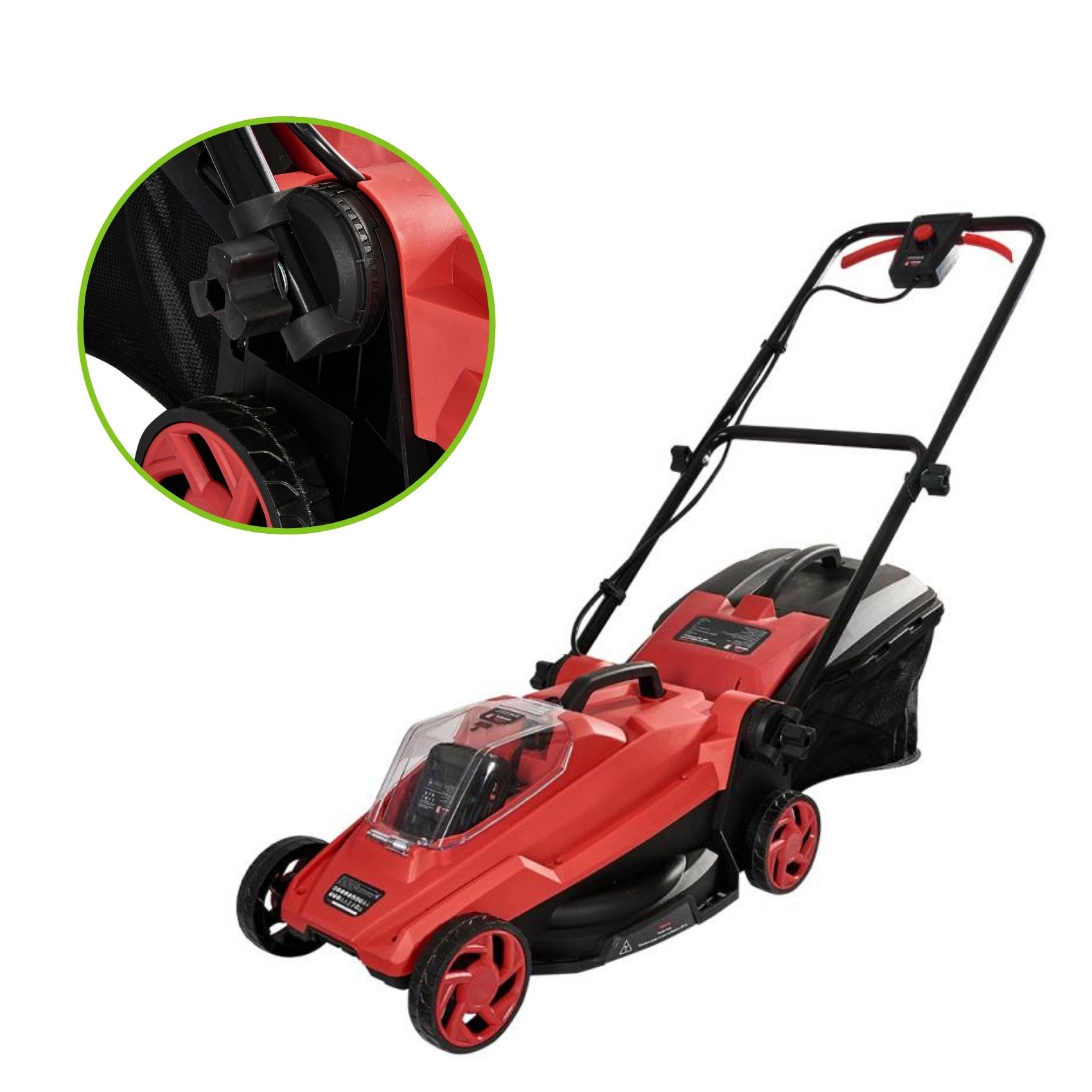 Переваги моделі: Легка та проста в експлуатації, не потребує складного обслуговування; Ширина захоплення – 32 см, три рівні висоти зрізу: 30, 45 та 55 мм; Об’єм травозбірника – 30 л, зручне складане руків’я та захист від випадкового увімкнення; Компактні розміри (655450380 мм) та вага лише 10,6 кг.