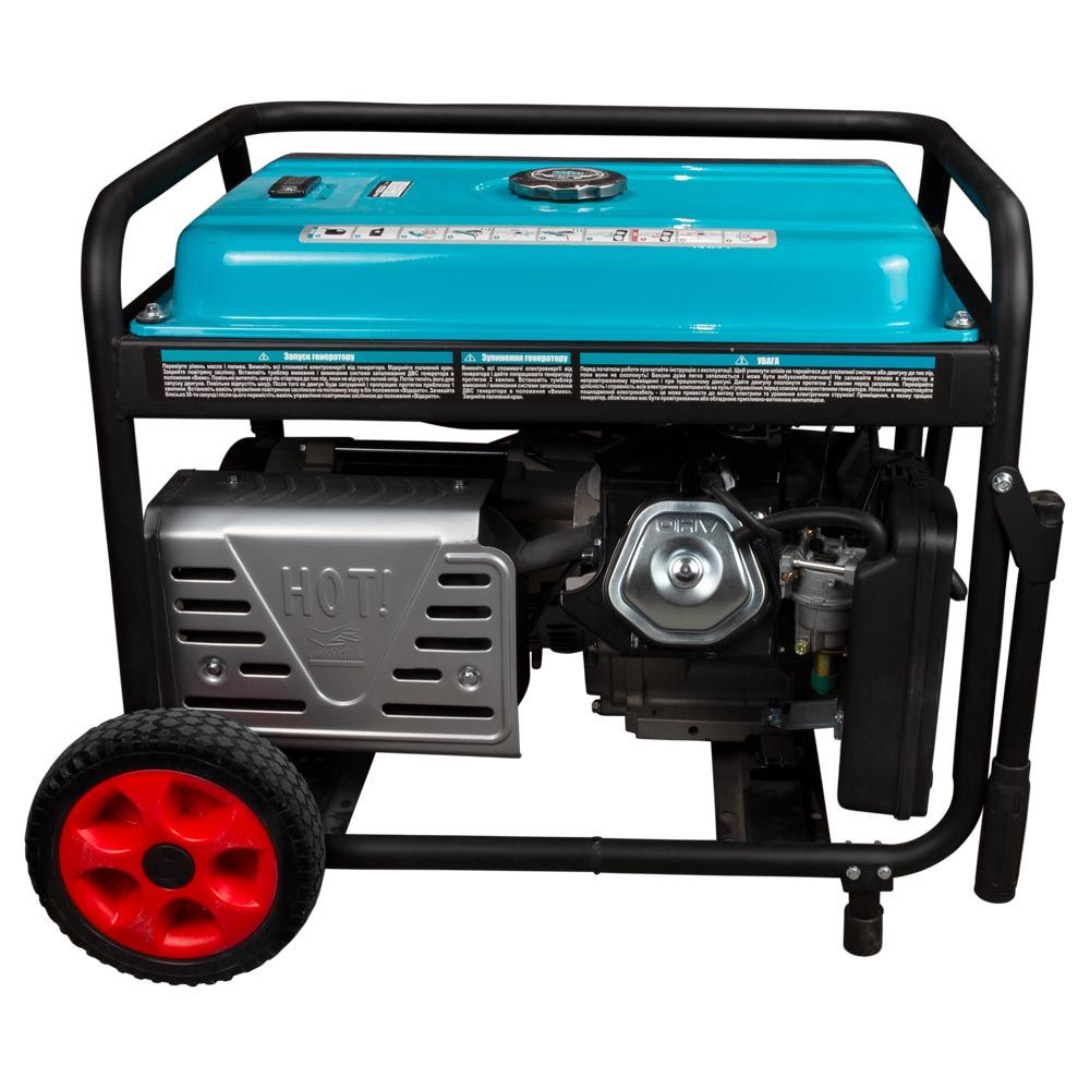 Серцем генератора є бензиновий чотиритактний двигун внутрішнього згоряння. Залежно від типу і виду обладнання, що підключається, при повній заправці генератор може пропрацювати близько 12 годин. Двигун генератора запускається за допомогою ручної системи запуску - пускового пристрою зі шнуром.