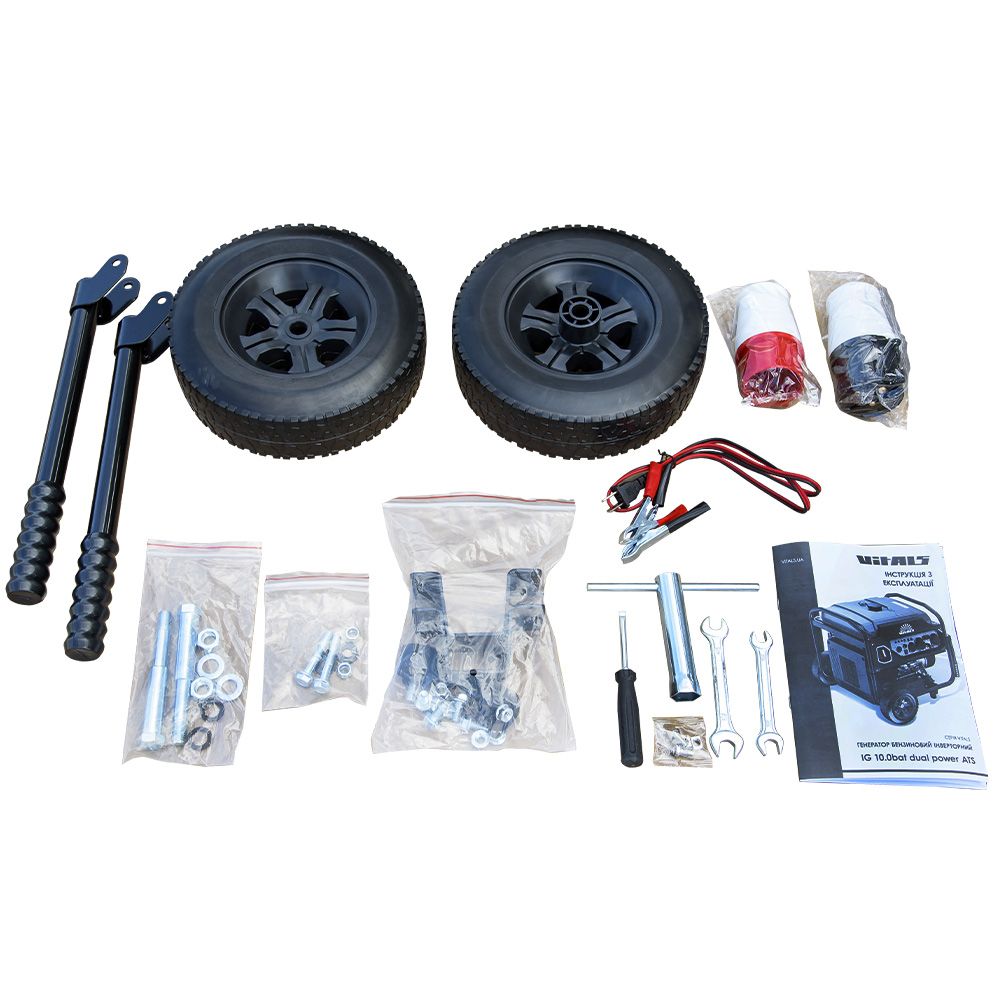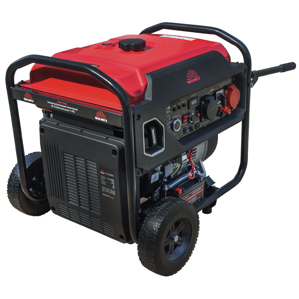 Технічні характеристики:Номінальна потужність: 10 кВт Максимальна потужність: 11 кВт Кількість фаз: 1/3 Напруга: 220/380 В Частота: 50 Гц Тип двигуна: 4-тактний, одноциліндровий Об’єм двигуна: 520 см Тип палива: бензин А-92 Обмотка альтернатора: мідна Рівень шуму: 65 дБ Клас захисту: IP21 Коефіцієнт потужності: 1 (1 фаза) / 0,8 (3 фази)Комплектація:У комплект входять: генератор, блок ATS, акумулятор 12 В 12 А·год, силові дроти для зарядки, набір для транспортування (колеса і ручки), кабель підключення ATS довжиною 8 м та набір запасних елементів.