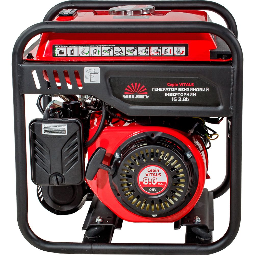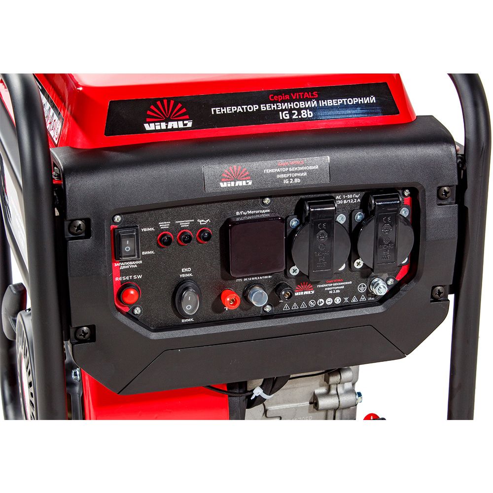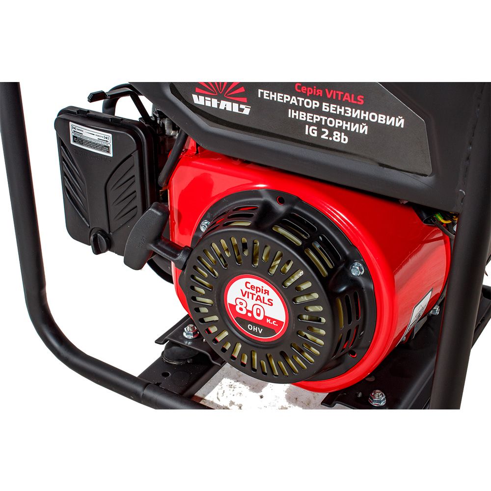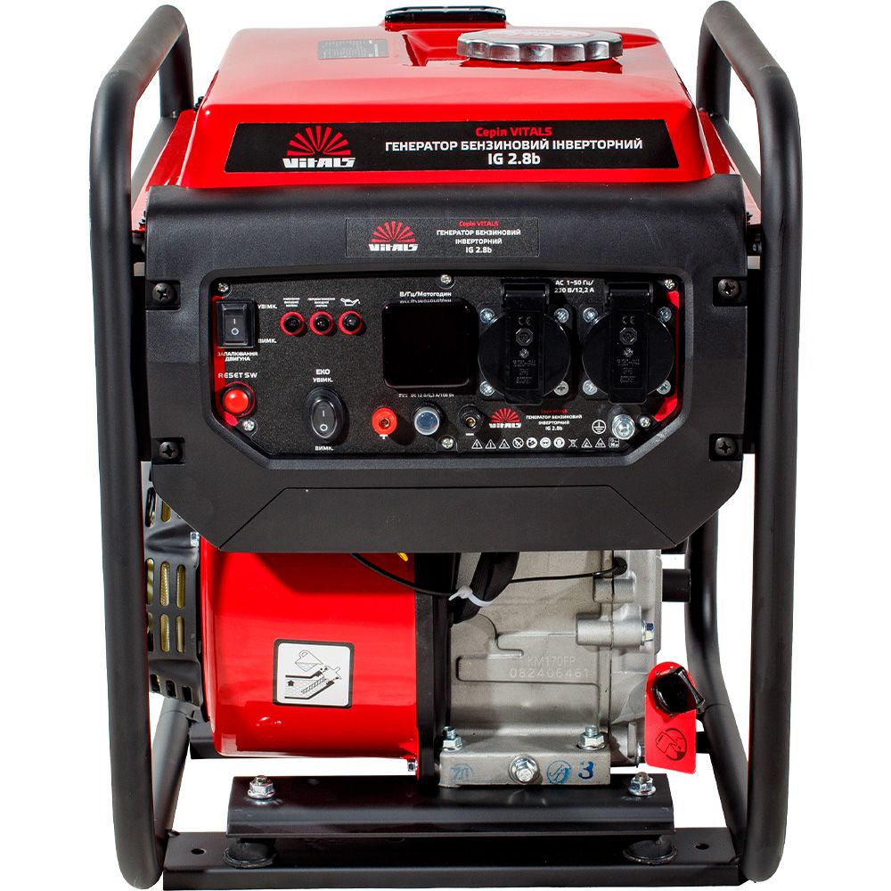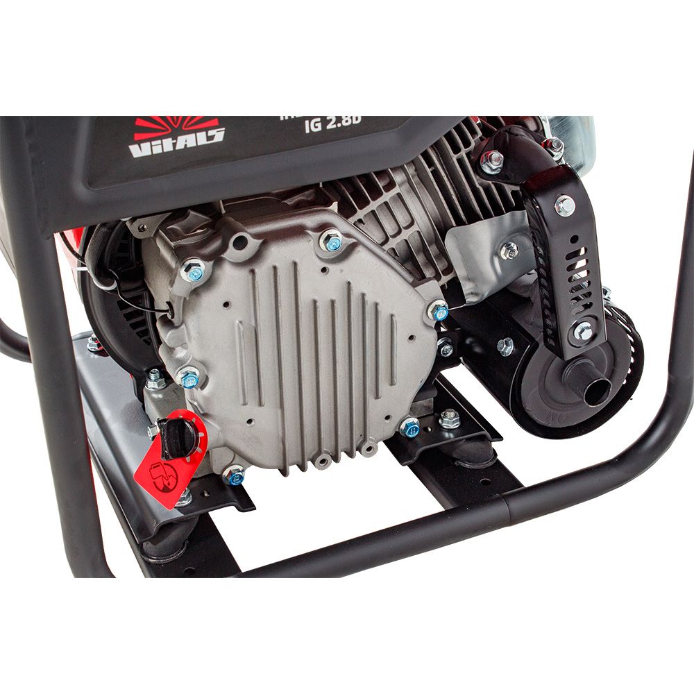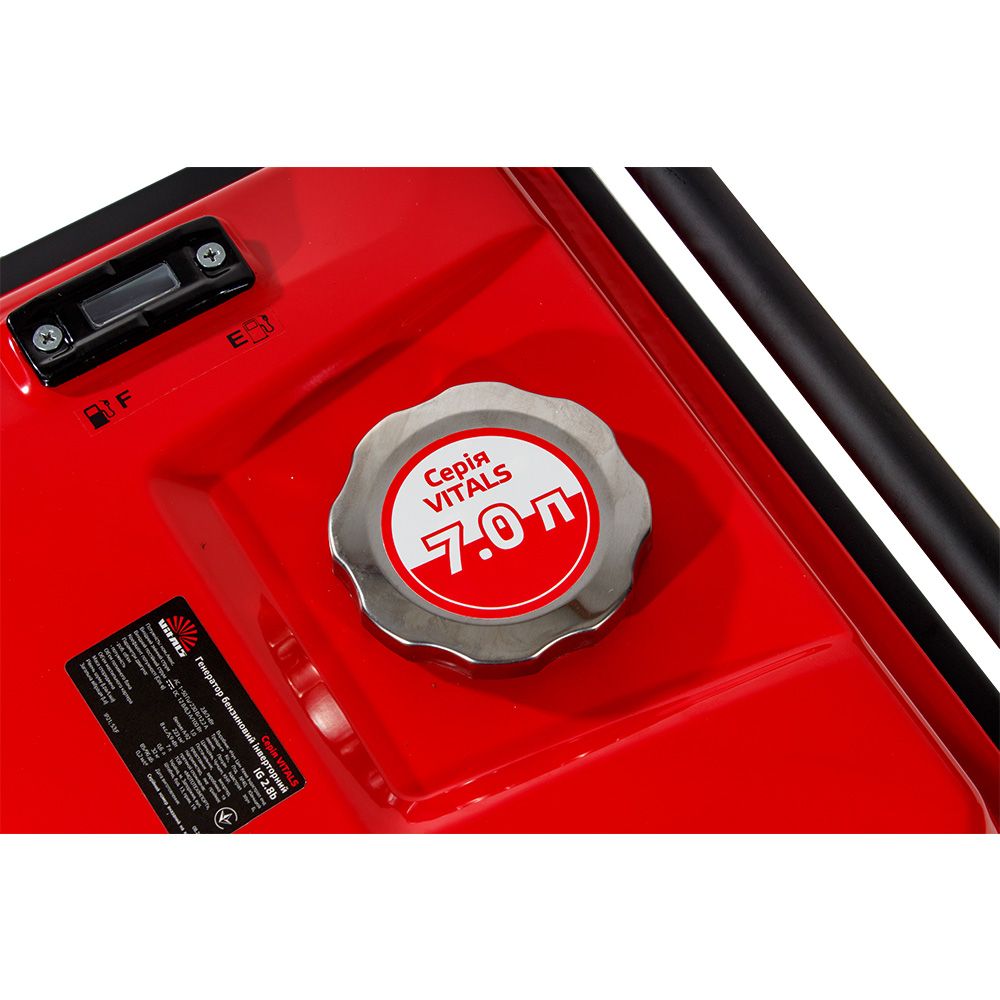 Тип запуску: ручний стартер Ємність паливного бака: 4,5 л Об’єм масла в картері: 0,35 л Паливо: бензин А-92 Система охолодження: повітряна Рівень шуму: близько 65 дБ Економічний режим «Еко»: є матеріал обмотки генератора: 100% мідь Захист від низького рівня мастила: є Антивібраційна система: дворівнева Контролер: цифровий 3-в-1 (вольтметр, частота, мотогодини) Тривалість роботи на одному баку: до 6 годин (залежно від навантаження) Габарити: уточнюється виробником Маса: близько 23 кг Гарантія: 36 місяців або 800 мотогодинКомплектація Генератор Vitals IG 2.
