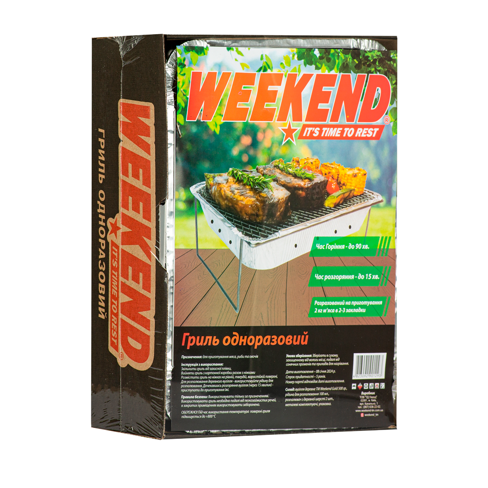 Гриль одноразовий TM"Weekend"Час горіння: до 90 хв.