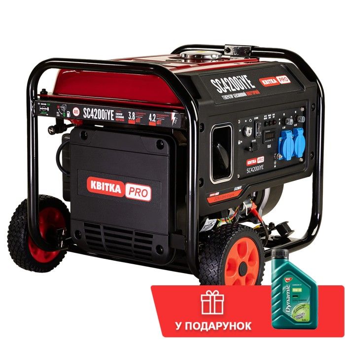 Інверторний бензиновий генератор КВІТКА PRO SC4200iYE - надійний та потужний інверторний генератор, який забезпечує стабільний і надійний постачання електроенергії. Завдяки своїй компактності та портативності, цей генератор легко транспортувати і використовувати в різних сферах життя. Він стане незамінним помічником на будівництві, під час пікніка, на дачі або в місцях, де немає стабільного доступу до електромережі.