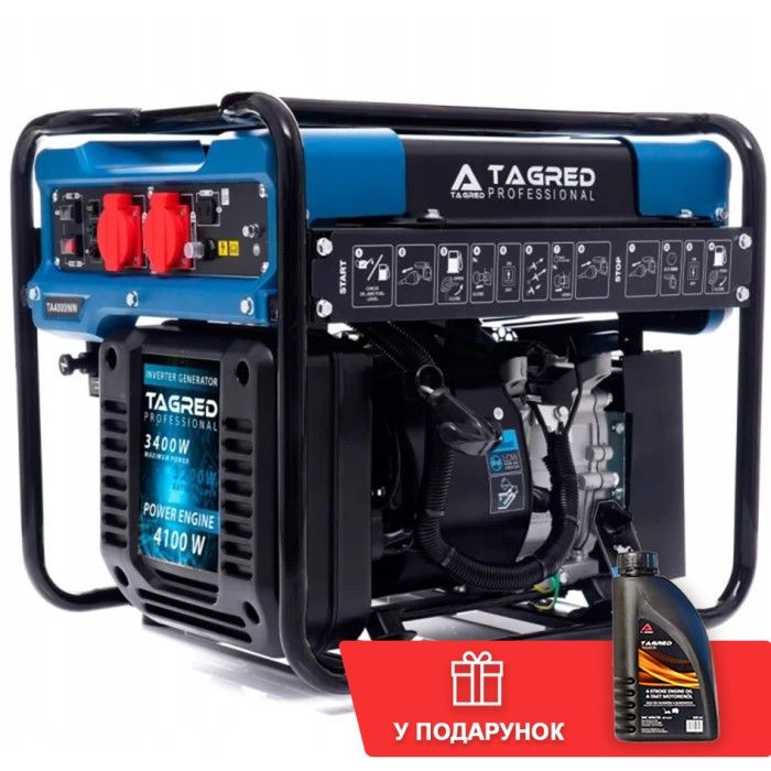 Інверторний бензогенератор TAGRED TA4100iNW - це потужний пристрій з можливістю вироблення електроенергії до 3.4 кВт. Цей генератор є надійним джерелом живлення під час відключення електромережі або у віддалених місцях, де відсутнє постійне живлення. Завдяки інверторній технології, ви зможете мати стабільний струм для підключення різних електроприладів, які необхідні вам в будь-який момент. Крім того, цей бензогенератор компактний, легкий у використанні та економічний в споживанні пального. Завдяки вбудованому інвертору, він генерує чистий струм без перешкод для підключення чутливої техніки.