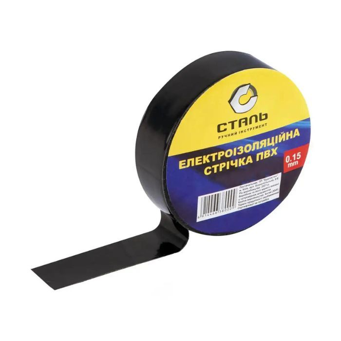Ізоляційна стрічка "Сталь" синього кольору (17 мм х 20 м, товщина 0,15 мм) ідеально підходить для електроізоляції проводів та кабелів під час ремонту чи монтажу. Виконана з міцного ПВХ, вона забезпечує надійне з'єднання, герметичність та захист від вологи, слабких розчинників та інших впливів. Односторонній липкий шар дозволяє зручно та швидко кріпити стрічку, що робить її незамінною для зрощування кабелів з неметалевими оболонками, а також для фіксації.
