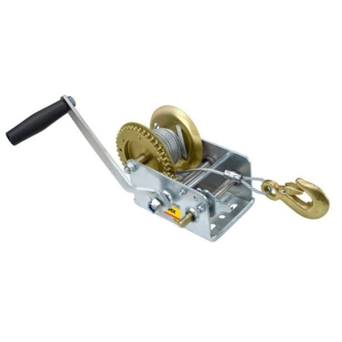 Канатна лебідка з храповим гальмом Topex (0.9 т) (97X087) підходить для будівельних робіт, ремонтних робіт, автомобілістів та інших сфер застосування, де необхідно піднімати або опускати вантажи до 0.9 тонни.