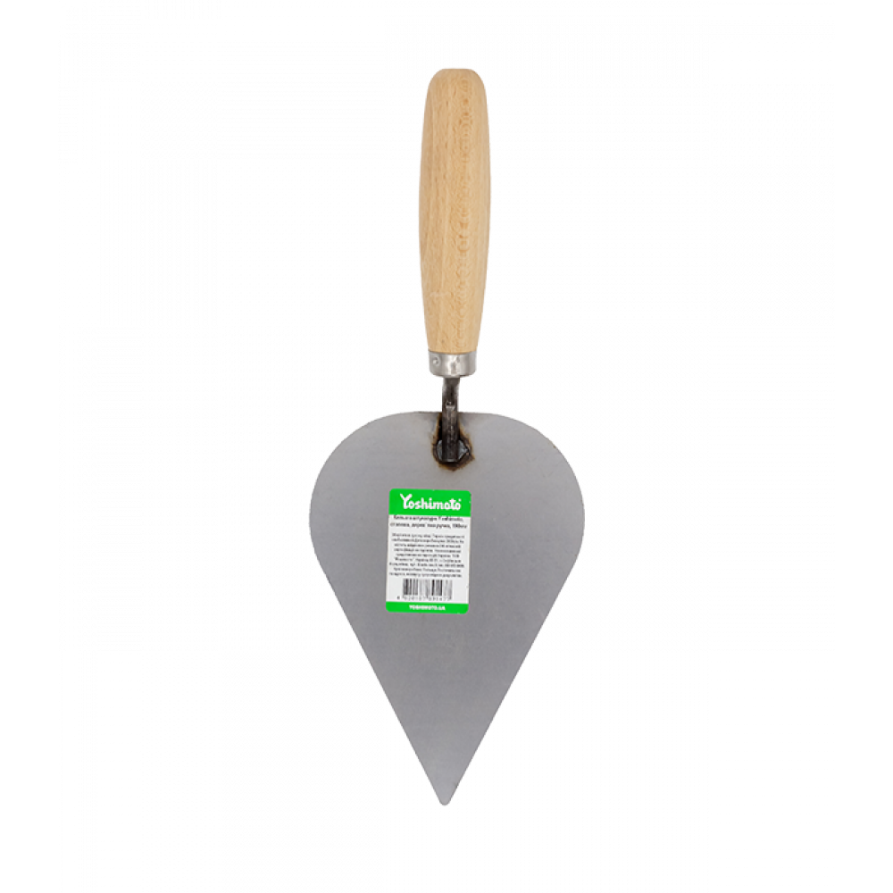 Kельма штукатура Yoshimoto, сталева, дерев’яна ручка, 190 мм — практичний інструмент, призначений для нанесення, розрівнювання та розподілення розчинів при виконанні будівельних і оздоблювальних робіт.