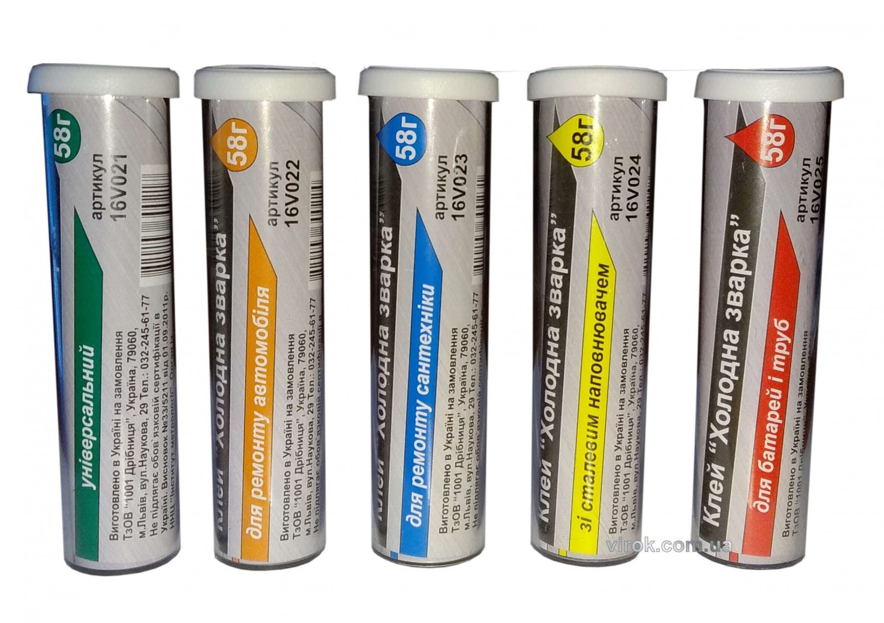 Інші унікальні властивості та переваги клею холодна зварка TM VIROK:- Великий обсяг - 58 грам;- Міцне зчеплення з поверхнею металу;- Відмінна адгезія до широкого спектра матеріалів;- Витримує вплив агресивних середовищ;- Швидкозатверджуючийся клей;- Можливість моделювання форми під час застосування (наприклад, реставрація кільцевої частини труби);- Економія часу та грошей на дороговартісних ремонтах;- Широкий спектр застосування - чудово підходить для внутрішніх робіт в побуті та промисловості.