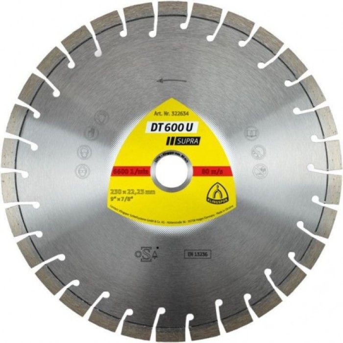 Klingspor Круг алмазний відрізний Supra DT 600 U 350х20 універсал - це високоякісний і надійний інструмент для різання різних матеріалів.