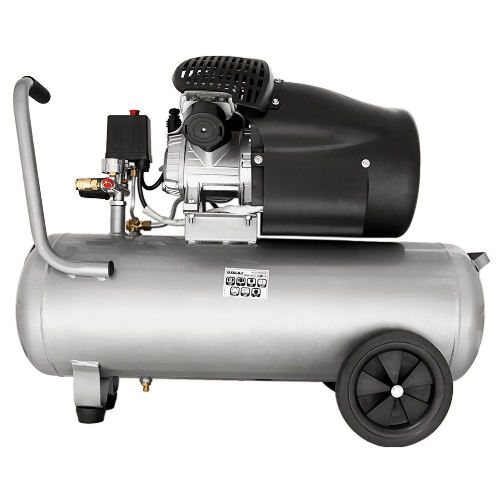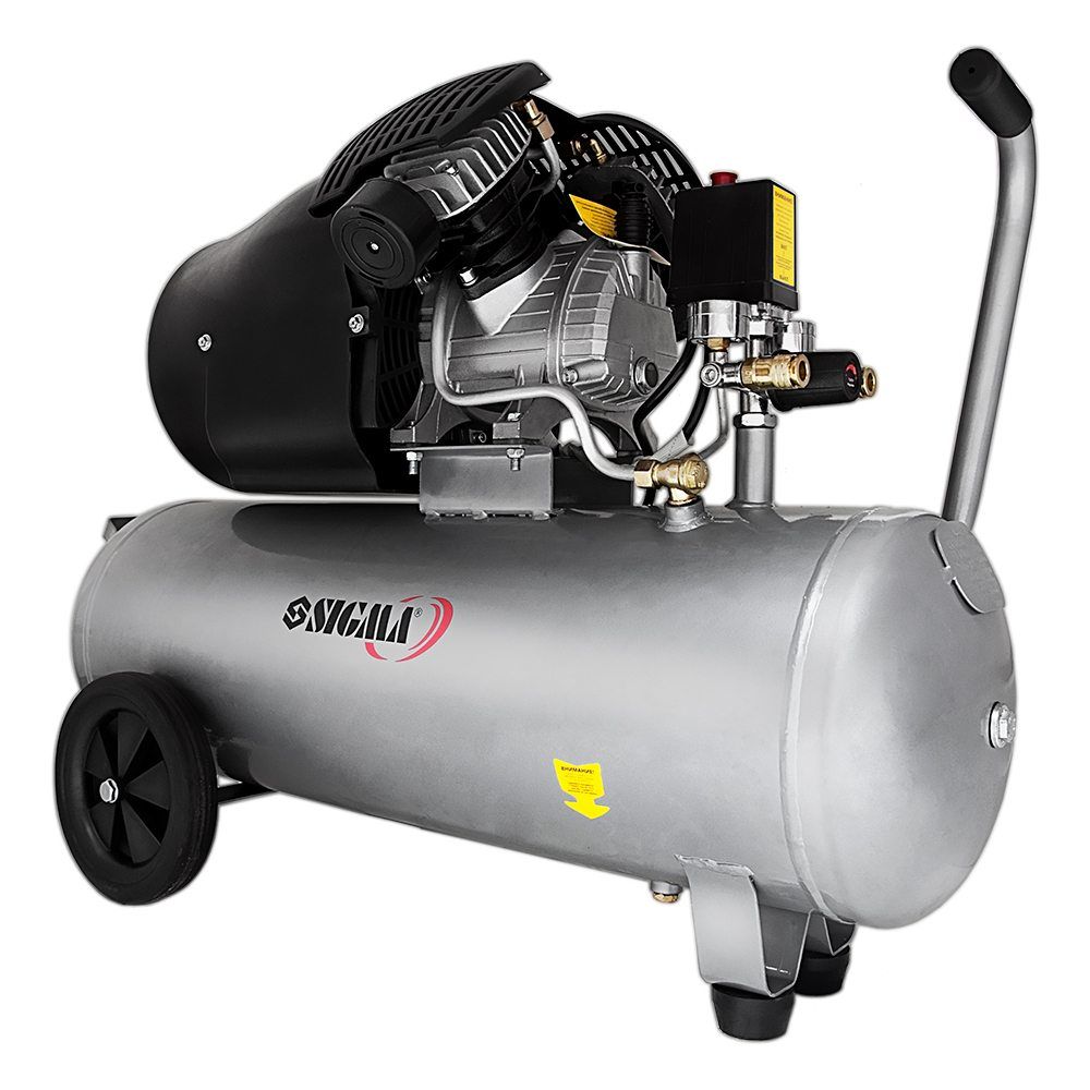 Компресор двоциліндровий 2.5кВт 455л/хв 10бар 50л (2 крана) SIGMA (7043721) призначений для нагнітання стисненого повітря з подальшою його подачею під тиском в різні типи пневмоінструменту і пневмообладнання.