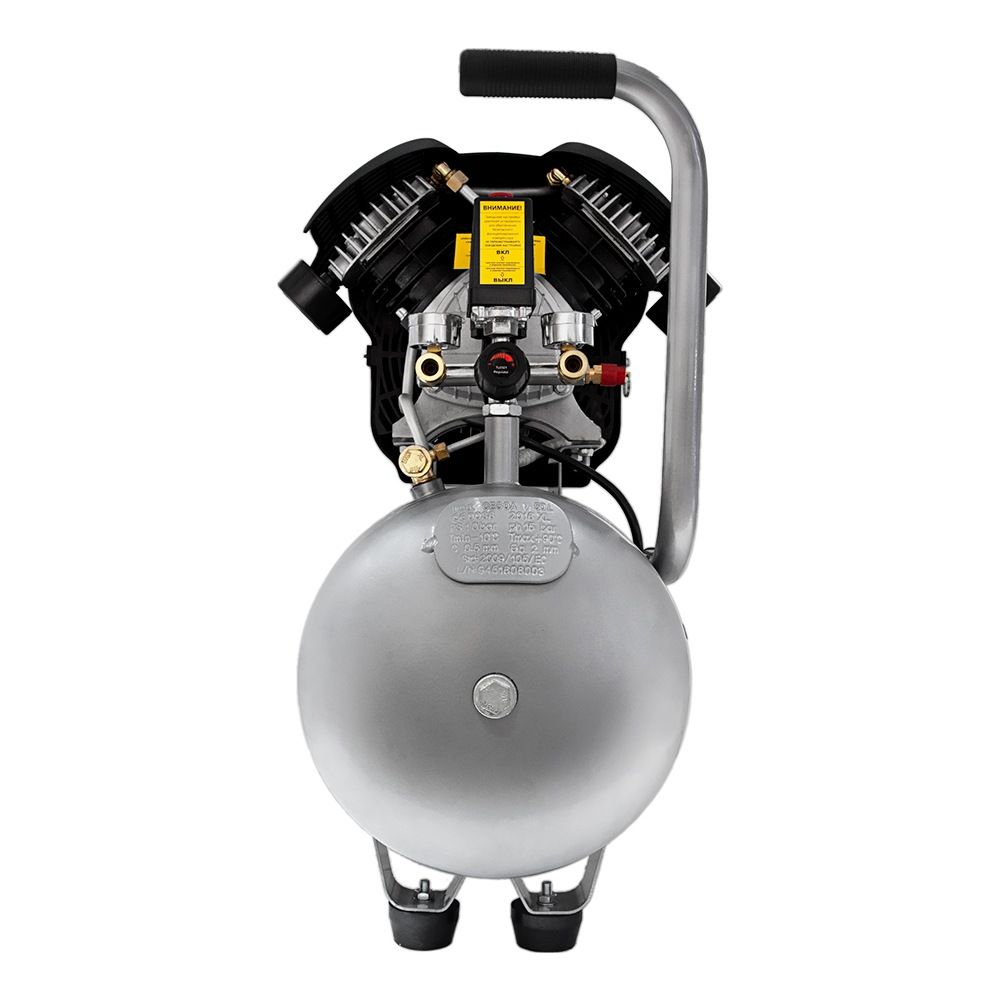 Двигун компресора закритий спеціальним кожухом, який запобігає його пошкодження і забруднення. Опорна ніжка забезпечує стійке положення на поверхні, а гумова подушечка знижує рівень вібрації.