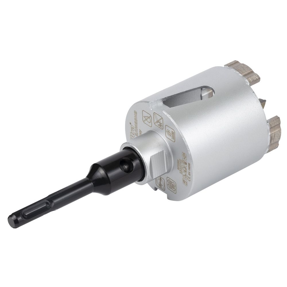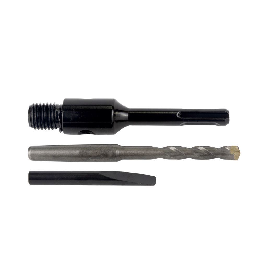 Набір включає коронку з внутрішнім різьбовим отвором М162, хвостовик SDS-plus, центрувальне твердосплавне свердло і клин для видалення свердла з хвостовика.