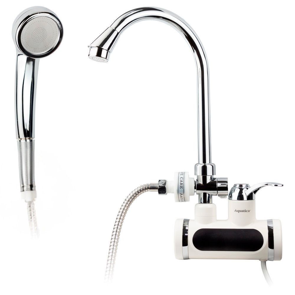 Кран-водонагрівач проточний AQUATICA JZ 3.0 кВт, 0.4–5 бар, для ванни, гусак J-подібний, настінний (JZ-7C141W)