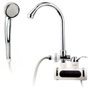 Компактний електричний проточний кран-водонагрівач із вбудованим змішувачем та цифровим дисплеєм, призначений для швидкого нагріву води без використання бойлера чи газової колонки. Ідеальний для дач, квартир і приміщень без централізованого гарячого водопостачання.