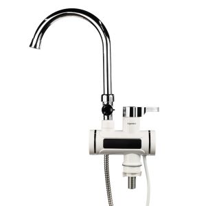 Компактний та зручний проточний кран-водонагрівач, що забезпечує миттєвий нагрів води до комфортної температури. Ідеальний варіант для квартир, дач, майстерень та інших місць без централізованого гарячого водопостачання. Оснащений цифровим дисплеєм для контролю температури води та ергономічним важелем регулювання потоку.
