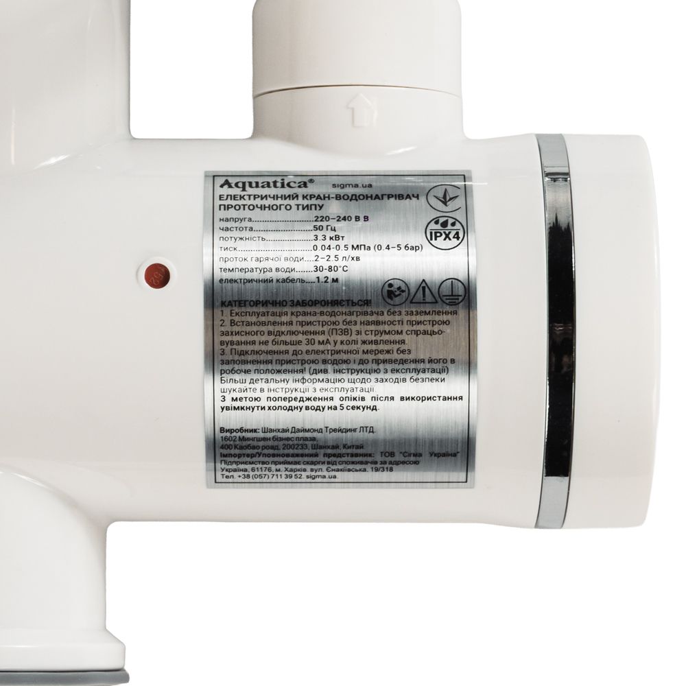 Кран-водонагрівач проточний AQUATICA S98, 3.0 кВт, для ванни, вилив «вухо» на гайці, з дисплеєм (9798203)