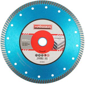 Алмазний круг Turbo CONCRETE PRO 230x3.0x10x22,23 (HAISSER) 4212633 призначений для професійного використання в будівельній індустрії і дозволяє здійснювати різання та обробку кераміки, граніту і марму.