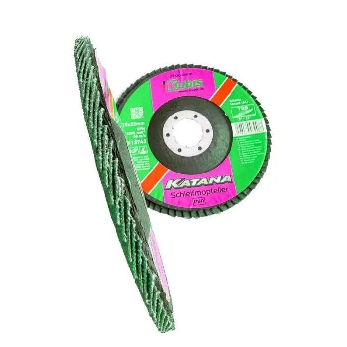 Круг пелюстковий торцовий конічний Т29 Р80, 125*22 мм, Zirconia KATANA використовується для обробки різноманітних матеріалів, таких як сталь, лак, пластик, метал, дерево і фарба. Він ідеально підходить для ремонту автомобілів, обробки металевих деталей, а також для різних робіт з деревиною. Цей круг надає можливість швидко та якісно виконувати різні завдання.