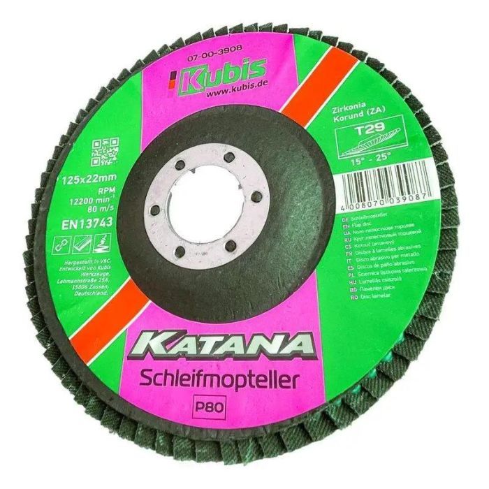 Круг пелюстковий торцовий конічний Т29 Р80, 125*22 мм, Zirconia KATANA має ще кілька унікальних властивостей і переваг, які роблять його незамінним помічником у вашій роботі. Він забезпечує високу якість обробки поверхні і дозволяє швидко виконувати завдання. Завдяки своїм характеристикам, цей круг чудово підходить для робіт з будь-яким матеріалом, незалежно від його твердості та структури. Він має компактний розмір, що дозволяє зручно використовувати його навіть на вулиці або в обмеженому просторі. Придбавши цей круг, ви отримаєте надійний і якісний інструмент, який виручить вас у різних ситуаціях.