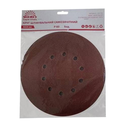 круга шліфувального самозачіпного Vitals 225 мм, 10 отв., з. – 60, 5 од.