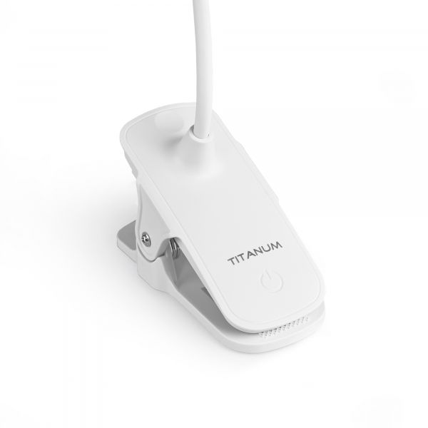 LED лампа настiльна з акумулятором TITANUM TLTF-013W 7W 3000-6000K – стильна, зручна та компактна лампа з можливістю регулювання яскравості та колірності. Вона кріпиться на столі, книжковій поличці або іншій пласкій поверхні за допомогою прищепного мехаізму. Лампа абсолютно безшумна, має вбудований акумулятор та тривалий термін служби. Корпус виготовлений з екологічно безпечного якісного пластику білого кольору. Рухома конструкція ніжки лампи дозволяє скеровувати світло у потрібному напрямку. Розрахована для освітлення письмового чи робочої зони. Реалізована можливість регулювання яскравості та зміни колірності світла, що сприяє зменшенню навантаження на зір. Керування лампою здійснюється за допомогою сенсорної кнопки, розташованої на її корпусі.